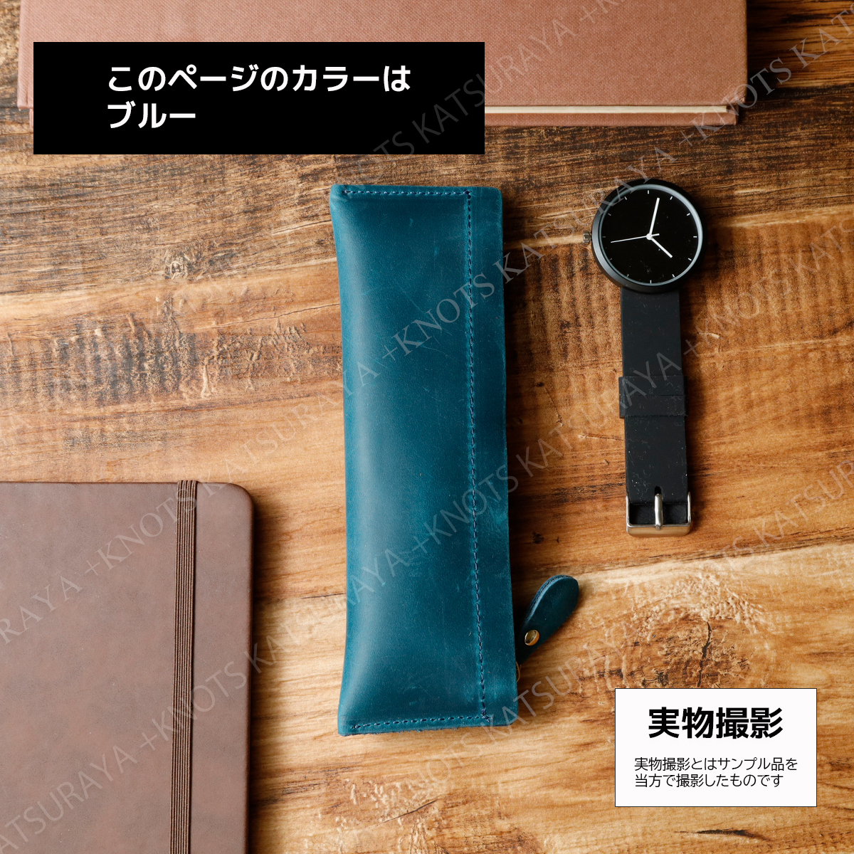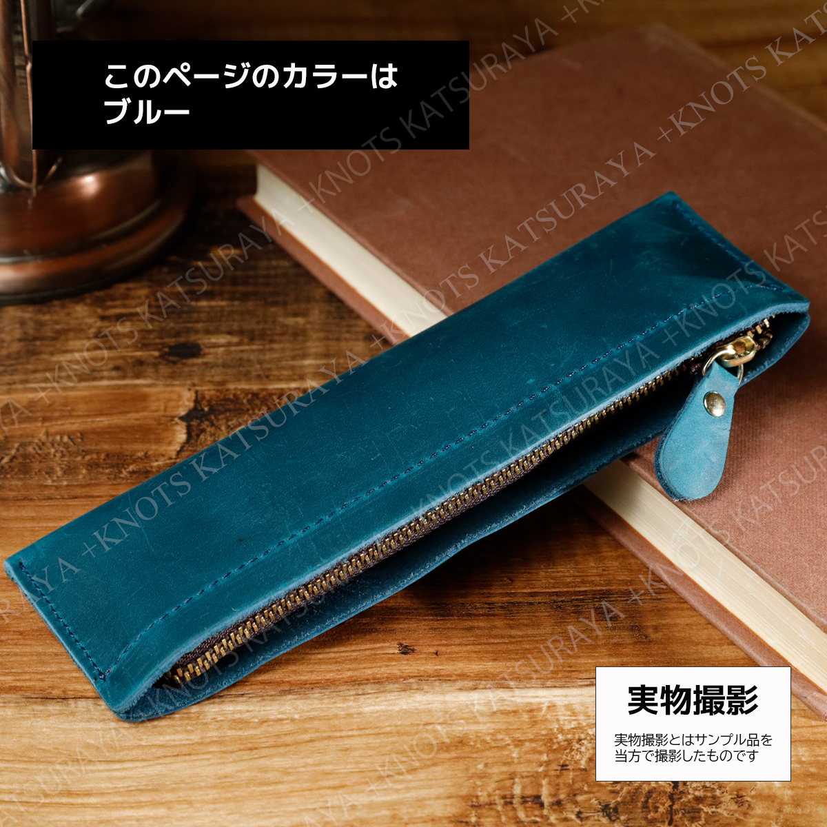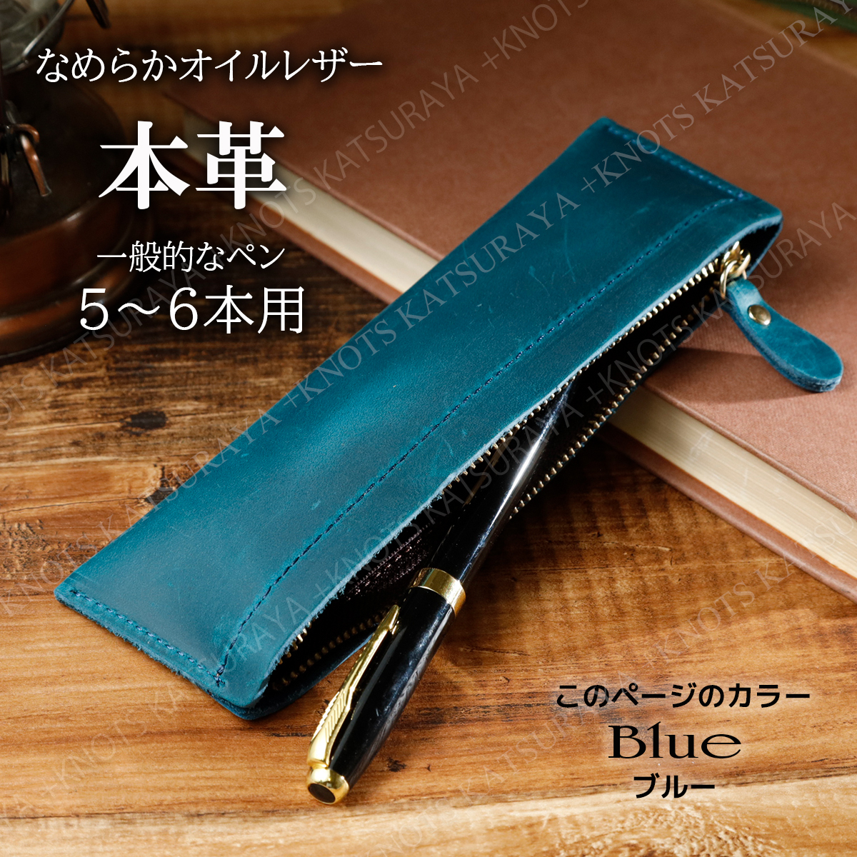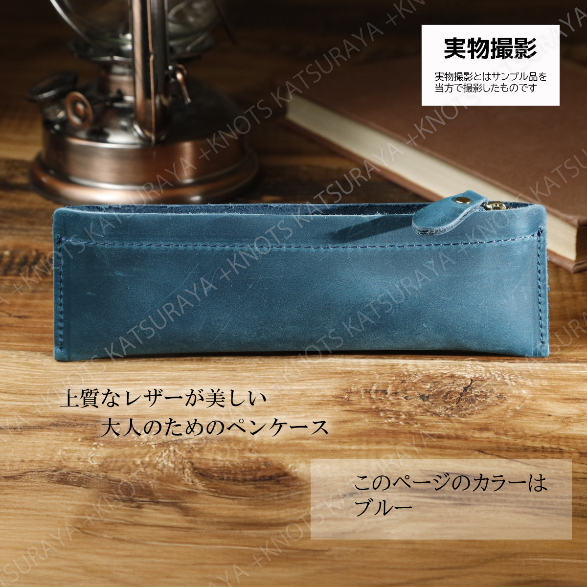 本革 ペンケース ブルー 大人用ペンケース メンズ レディース 男女兼用 ペン入れ 筆箱 筆入れ ペンポーチ シンプル 牛革 レザーa455