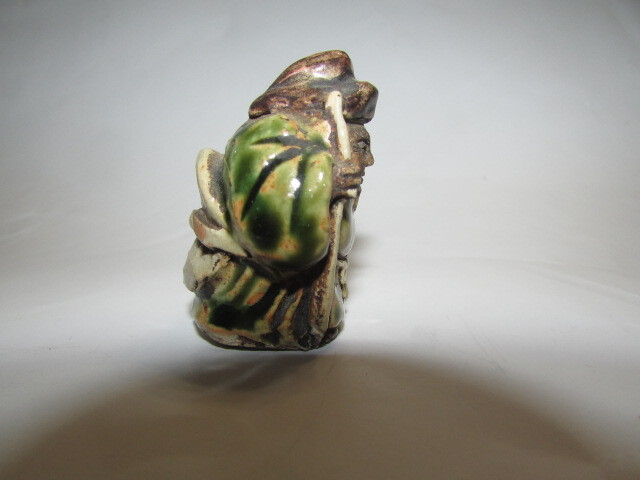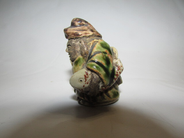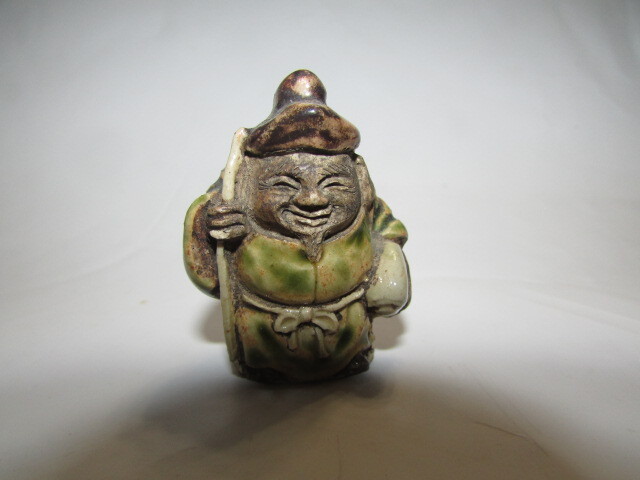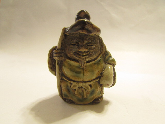 ( 会津若松・旧家・蔵出し)明治時代( 織部焼と思われるの小さな恵比寿様人形 )貴重・珍品