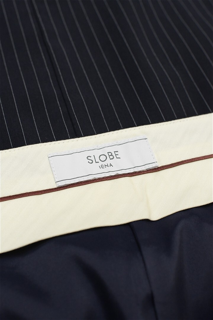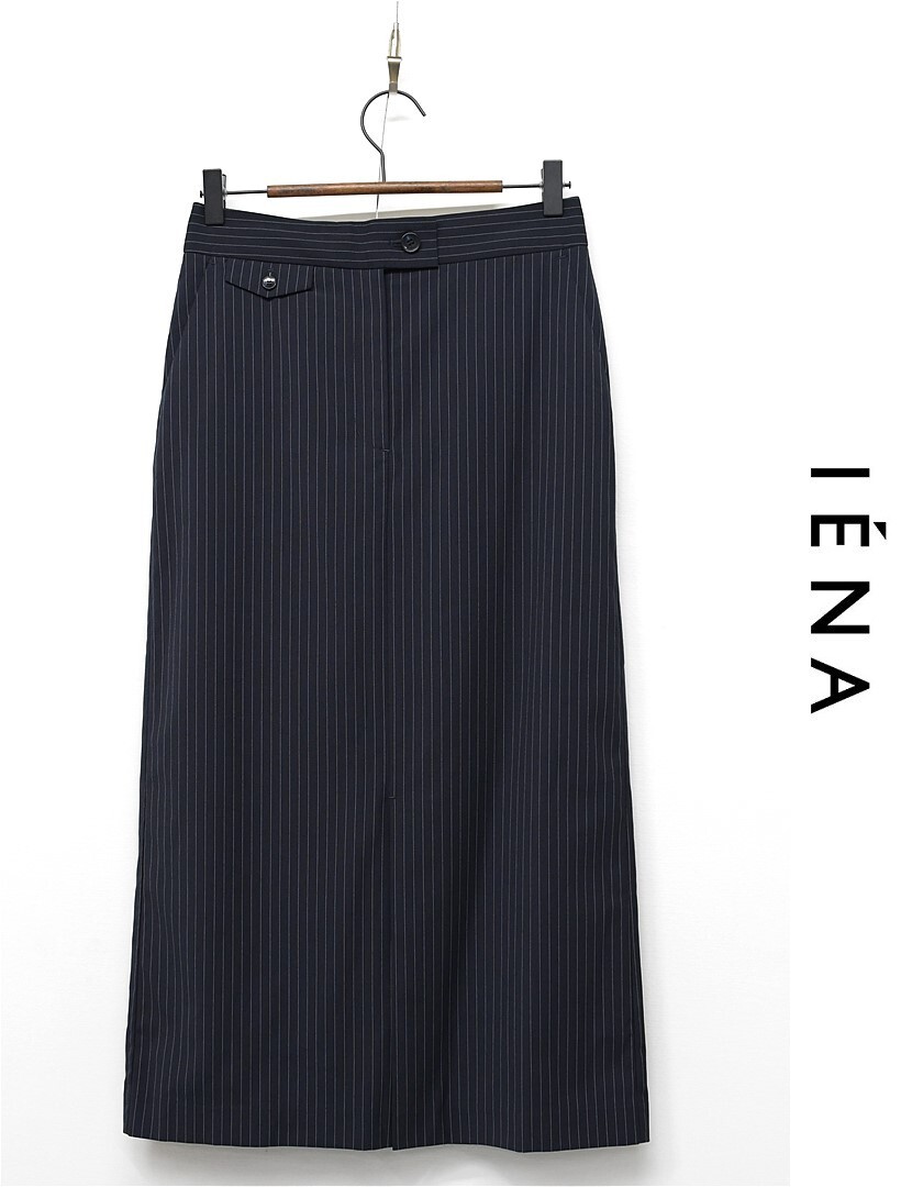 H510/美品 24SS SLOBE IENA ロングスカート ストライプ 前スリット 36 S 紺