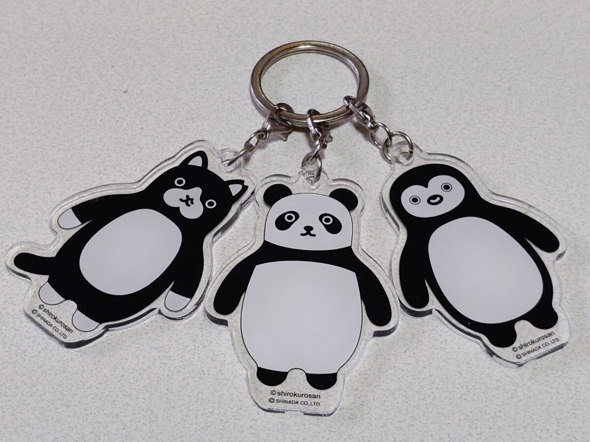 白黒さん×フモフモさん コラボデザインのキーホルダーです。 アクリルのぺんちゃん、ぱんちゃん、てんちゃんがついています。 中古になりますので、多少の擦り傷や汚れがございます。 あらかじめご了承くださいませ。 |