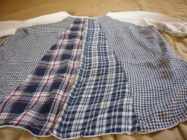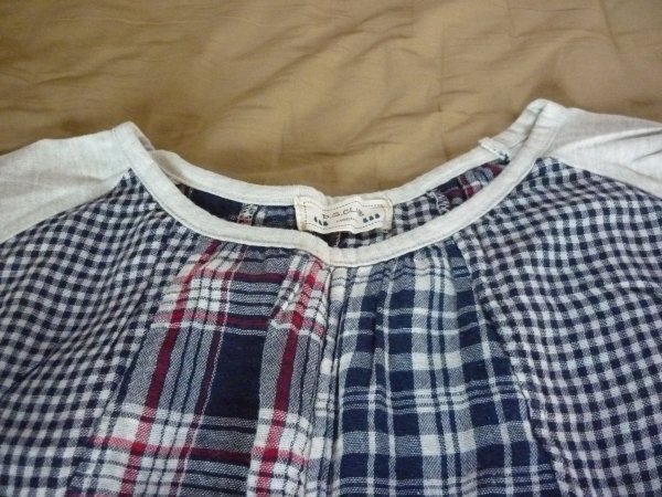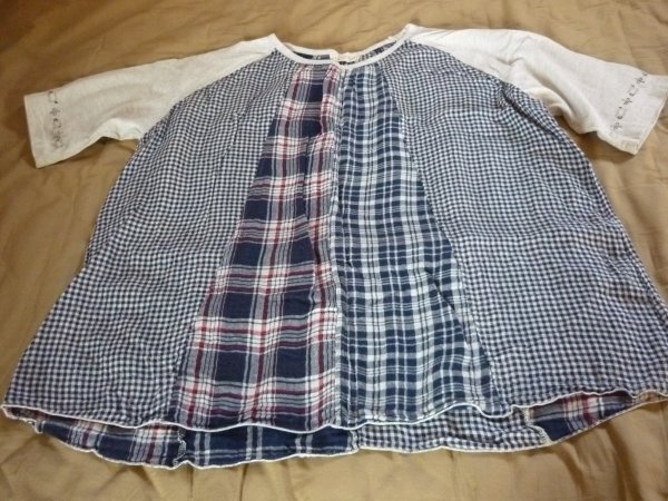 パッチワークのチェック柄で袖の刺繍がおしゃれなシャツです。