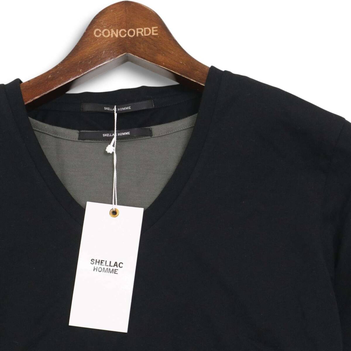 【新品 未使用】 SHELLAC HOMME シェラック オム レイヤード 半袖 Vネック カットソー Tシャツ タンクトップ Sz.M メンズ 黒