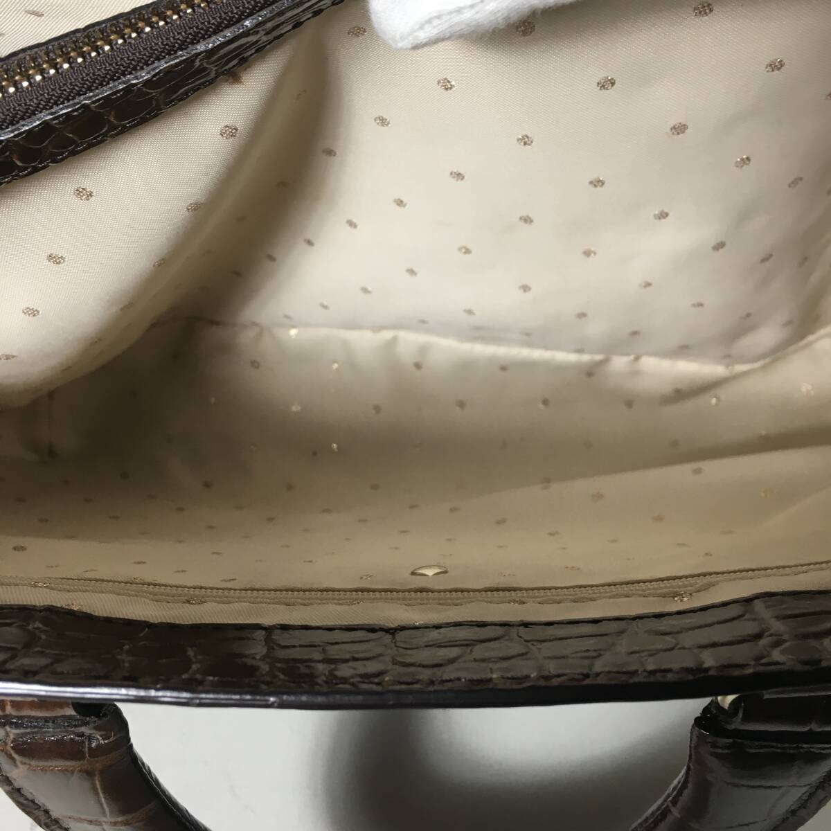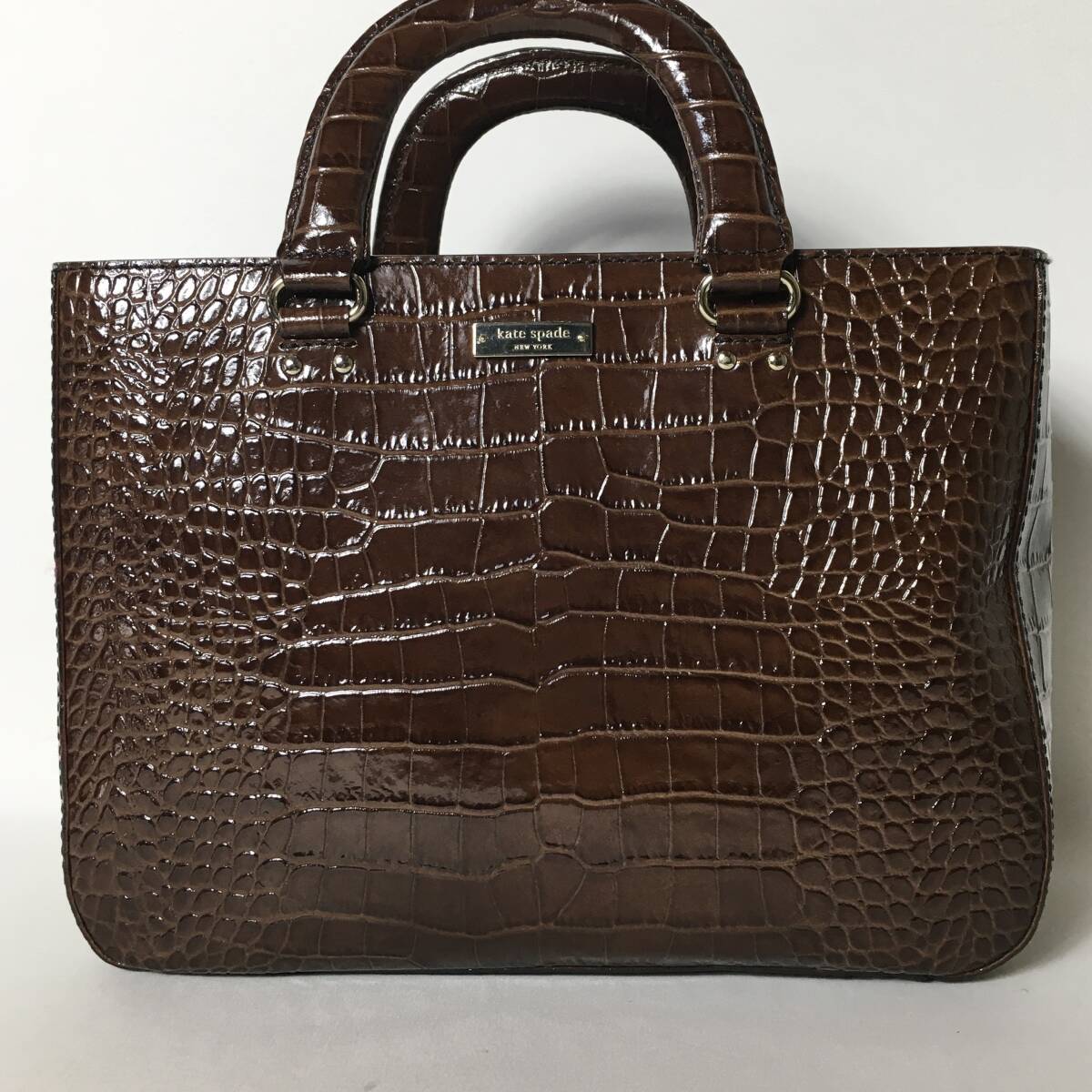 77B90| 美品 【 ブランド名 】kate spade ケイトスペード 【 アイテム名 】- 【 カテゴリ 】ハンドバッグ 【 素材 】エナメルレザー 【 カラー 】ブラウン 【 その他 】クロコ型押し 【 付属品 】- 【 サイズ 】(cm) ※実寸値 縦×横×幅:23×32.5×12 ハンドル:33 【 仕様 】 ( 収納ポケット ) 外側:なし 内側:ファスナー2,オープン2 ( その他 機能 ) なし 《 備考 》 ・出品している商品は鑑定基準を全てクリアした正規品になります。コピー品の類は一切取り扱っていませんのでご安心ください。 ・中古品は商品の状態に合わせて価格を決めていますので低価格の場合もございますが正規品に間違いありません。 ・商品の状態につきましてはこれまでの経験に基づき評価させていただいておりますが、あくまで個人の主観となりますので神経質な方は購入をお控えください。 ・出来る限り現物の状態が分かるように出品しておりますが記載のない不明点等ありましたらお気軽にコメントいただければと思います。