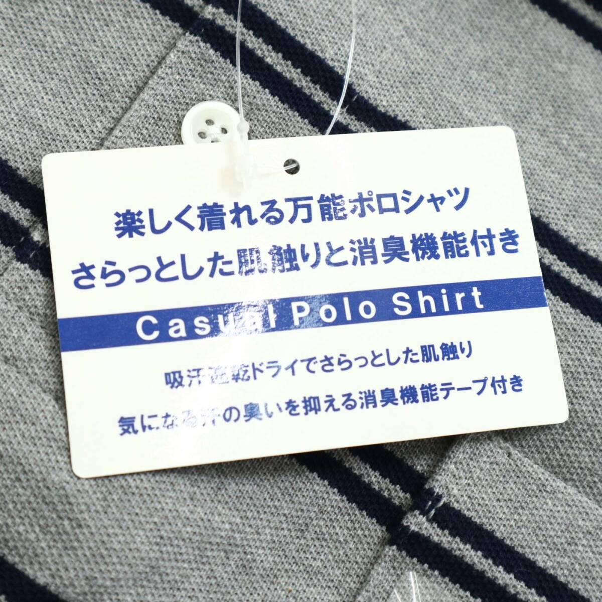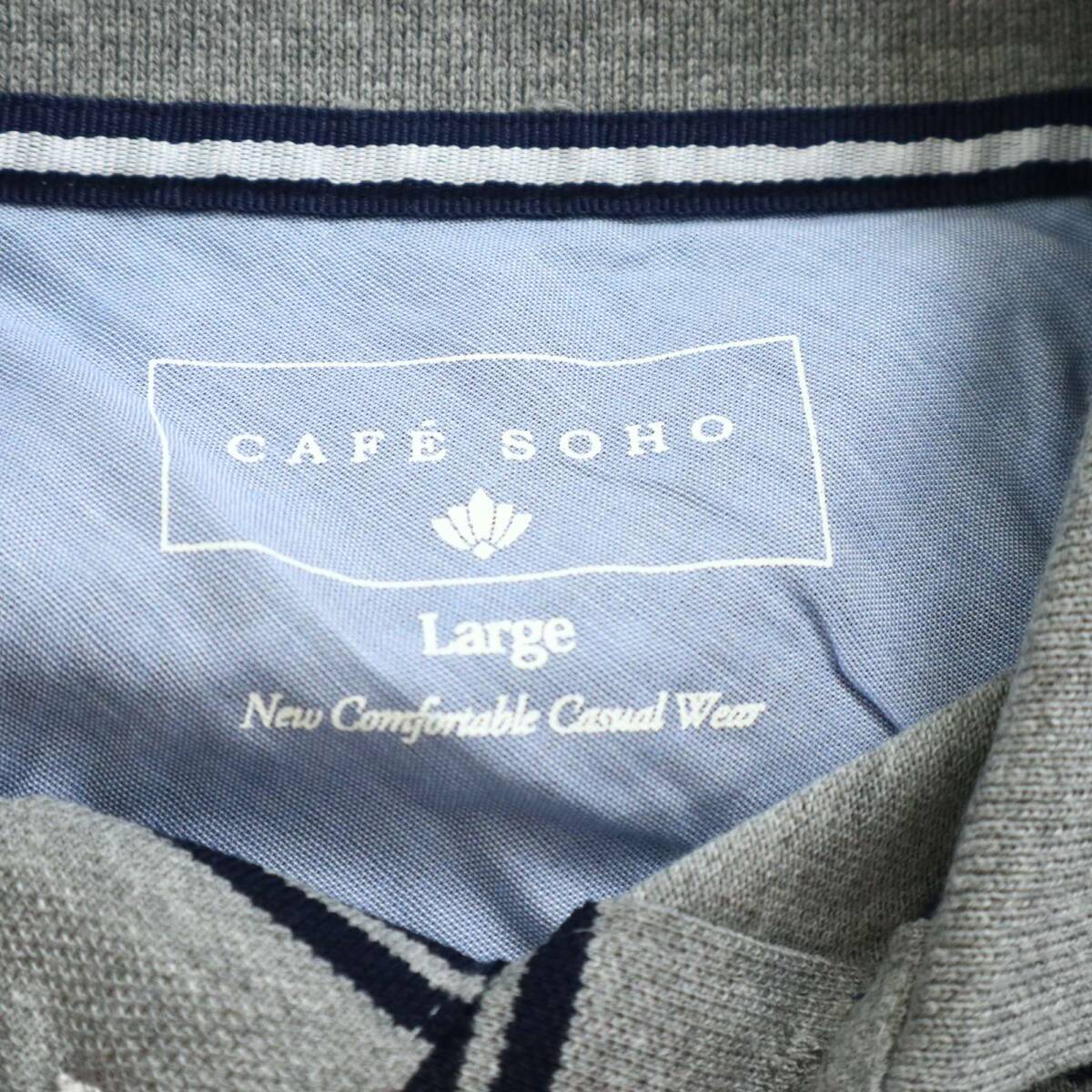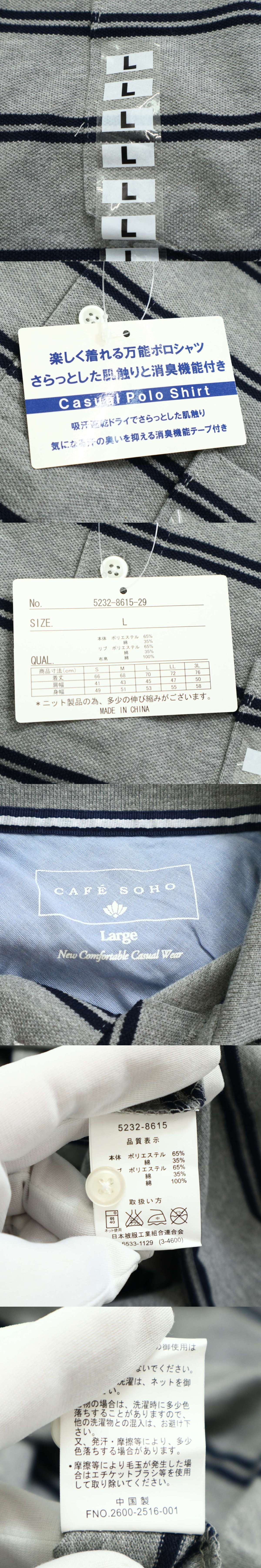 【新品 未使用】 CAFE SOHO カフェソーホー 春夏 吸汗速乾★ 半袖 鹿の子 ボーダー ポロシャツ Sz.L メンズ 灰 グレー