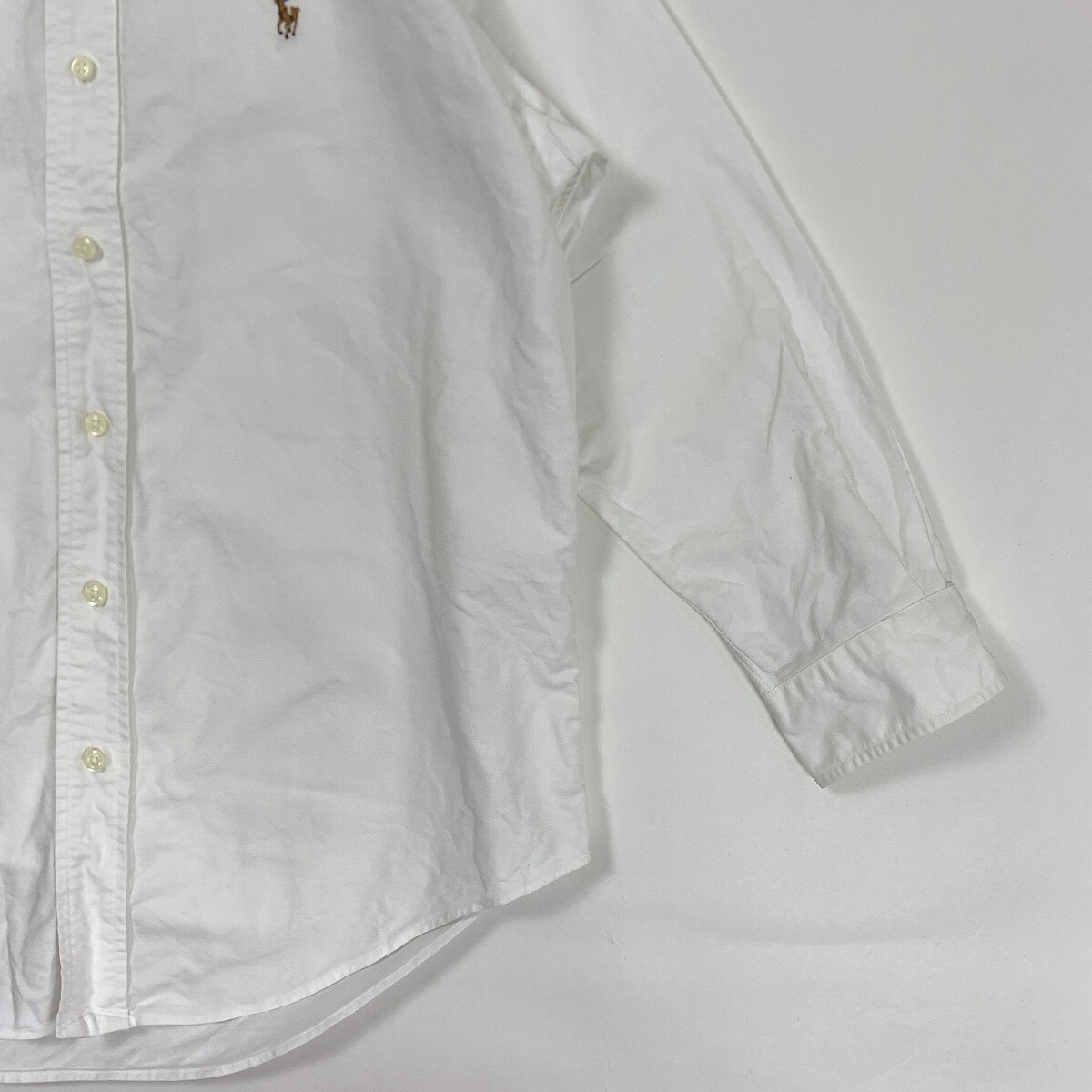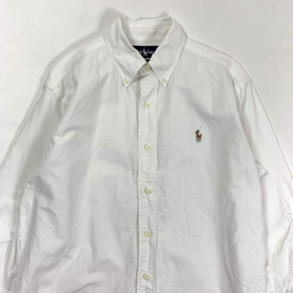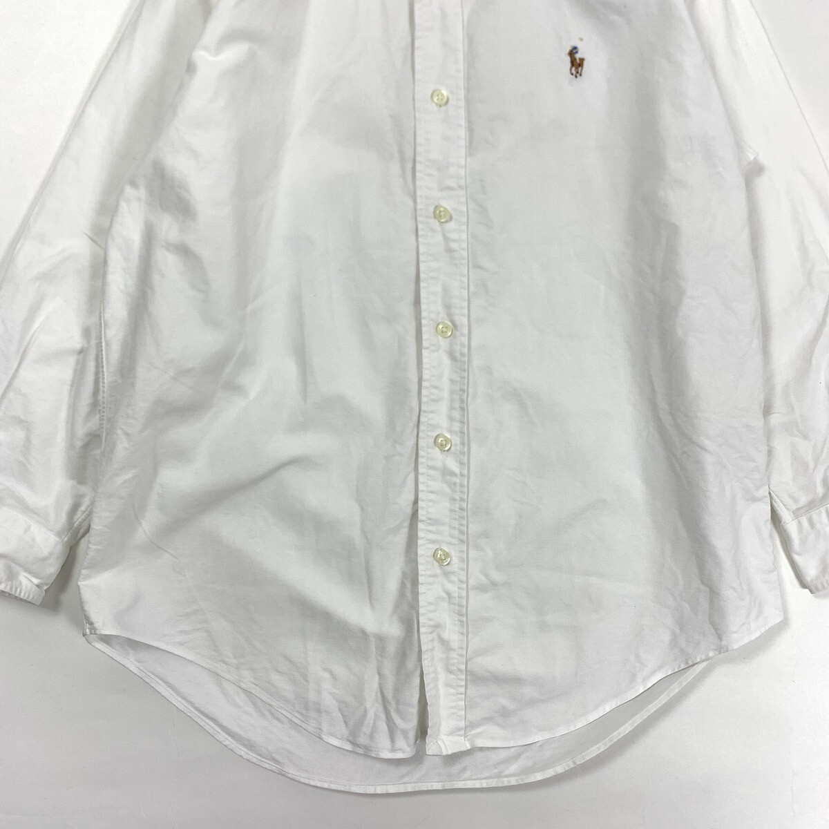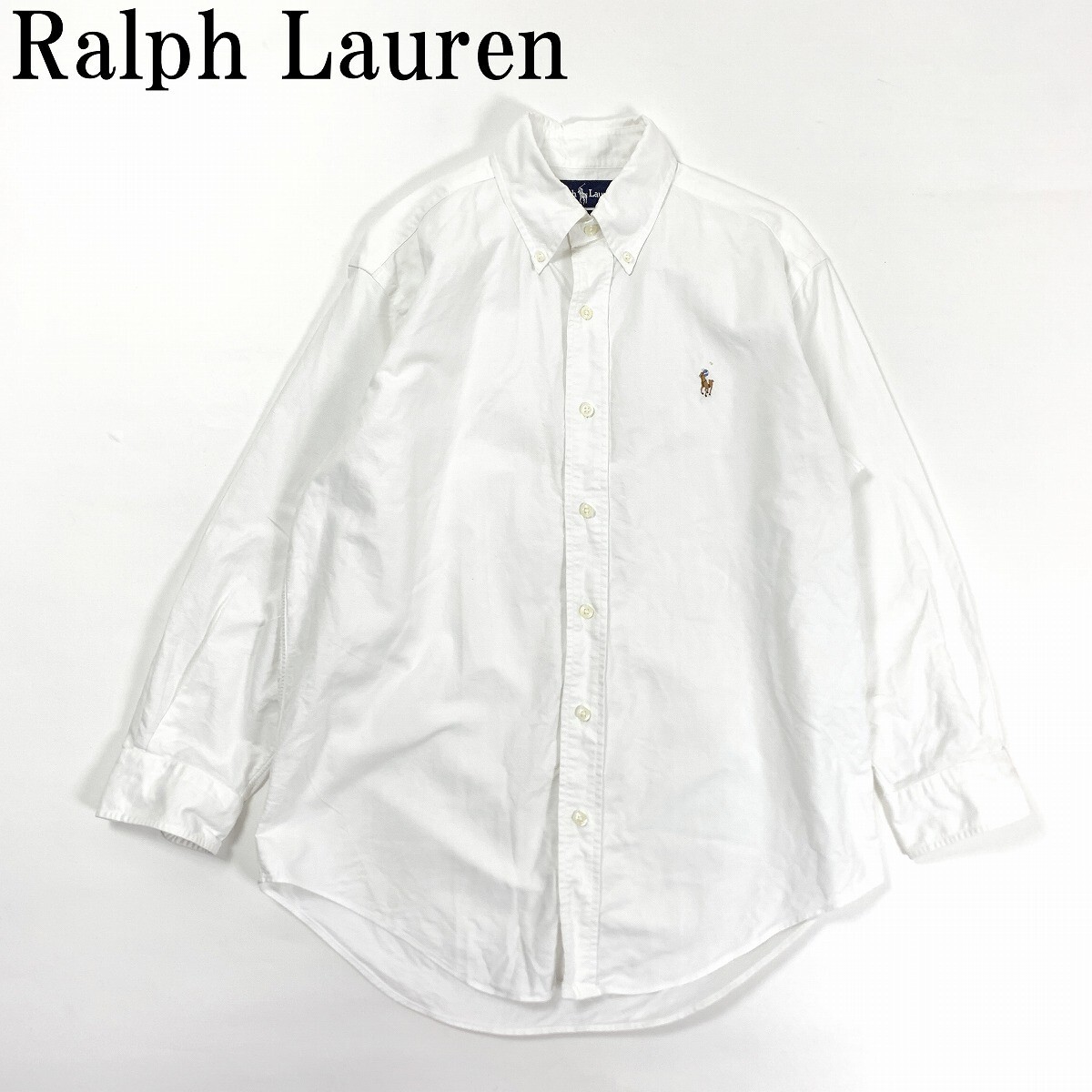Ralph Lauren ラルフローレン コットン100% 長袖ボタンダウンシャツ ホワイト 37-80 YC939