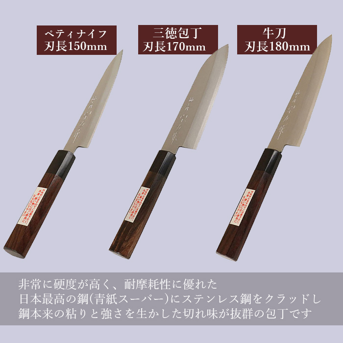 ・刃部材質:青紙スーパー(刃芯)・SUS412三層仕上げ(側面)