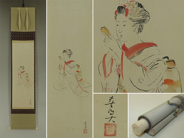 | №2404054【模写】立石春美【朱唇】◆紙本◆共箱◆掛軸 | |