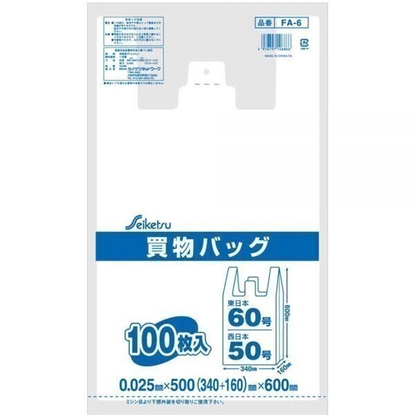 | ●買い物バッグ レジ袋 東日本60号/西日本50号 ●厚み0.025mm ヨコ幅50cm(幅34cm/マチ16cm) タテ幅60cm ●2Lのペットボトルが6本入ります ●色:半透明乳白色 ●材質:HDPE(高密度ポリエチレン) ●袋の素材は引っ張り強度が強く、耐熱・耐薬品性・耐ガスバリア性に優れます ●透明度が低くレジ袋のようにカサカサした感触が特徴です 【商品詳細】 規格:東日本60号/西日本50号 サイズ:厚み0.025mmXヨコ幅50cm(幅34cm/マチ16cm)Xタテ幅60cm 材質:HDPE(高密度ポリエチレン) 色:半透明乳白色 内容量:1パック100枚入り 生産国:中国 JANコード:4976797106866 製造メーカー:株式会社セイケツネットワーク |