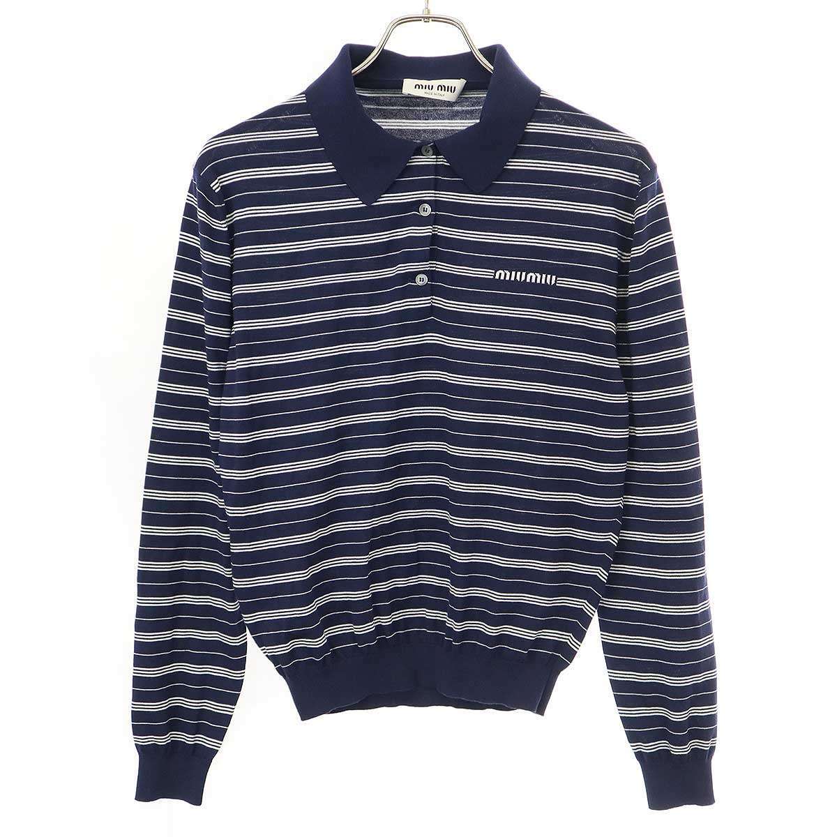 miu miu ミュウミュウ Cotton Jersey Long Sleeve Polo Shirt コットンジャージー ポロシャツ MML951 140V ネイビー 38 ITJLQR8VOPUO