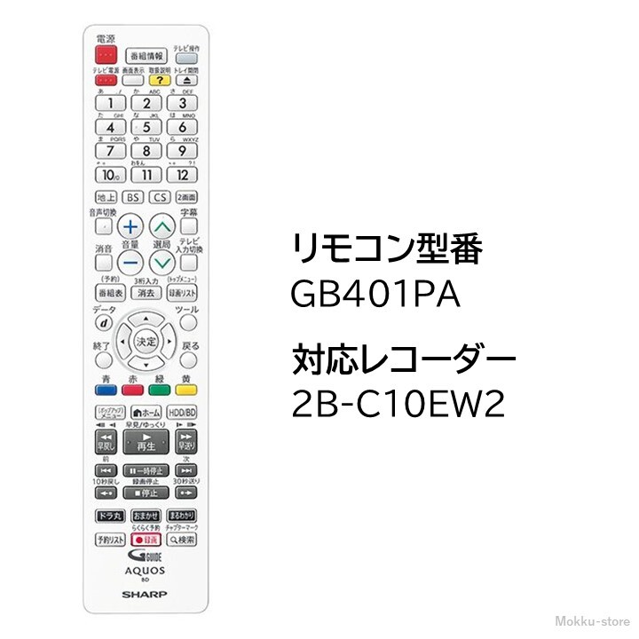 シャープ アクオス ブルーレイ 純正リモコン GB401PA SHARP AQUOS 4K レコーダー リモコン 0046380291 2B-C10EW2