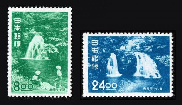 N268■【糊落ち】1951年 観光地百選切手 赤目四十八滝 2種(8円、24円)■未使用・美品