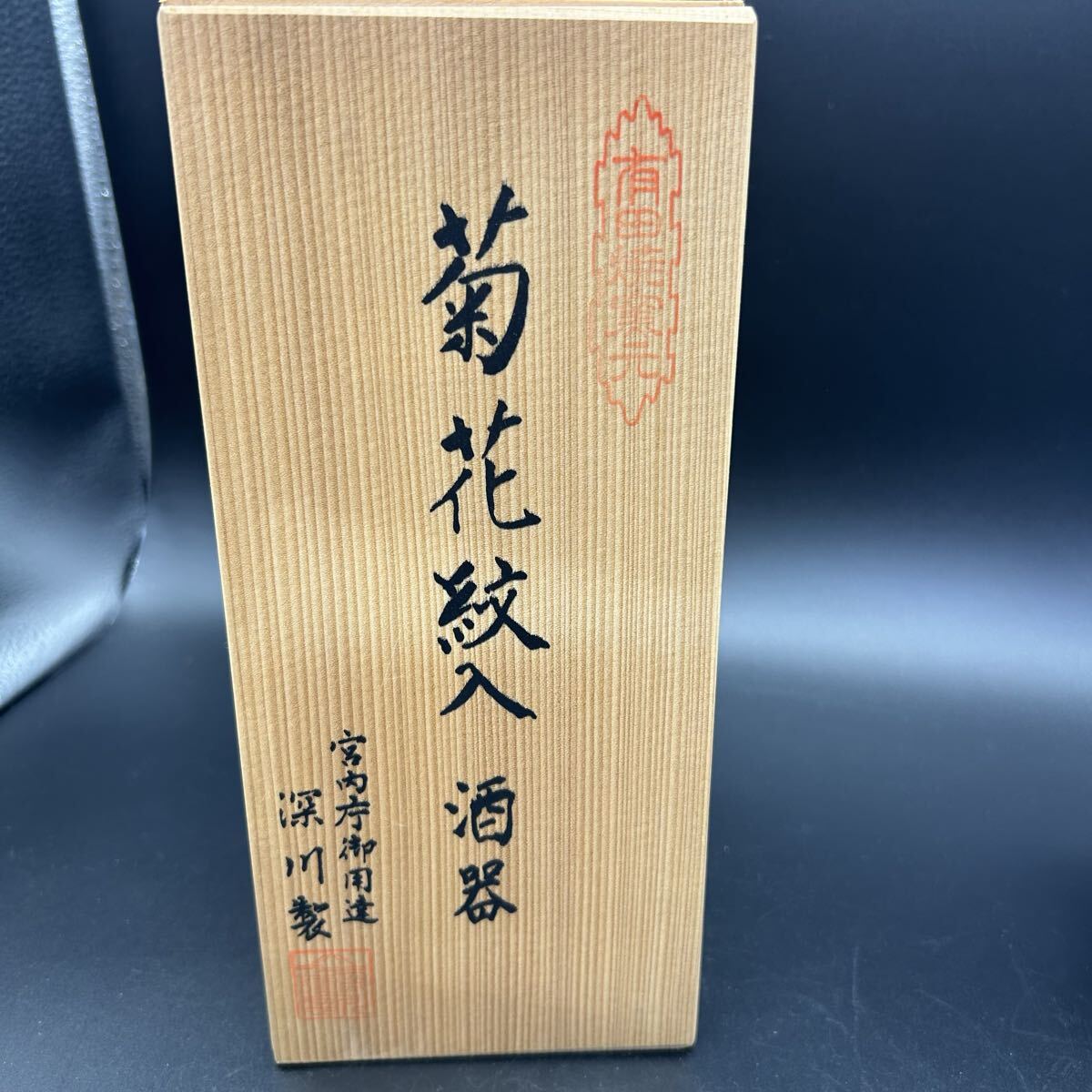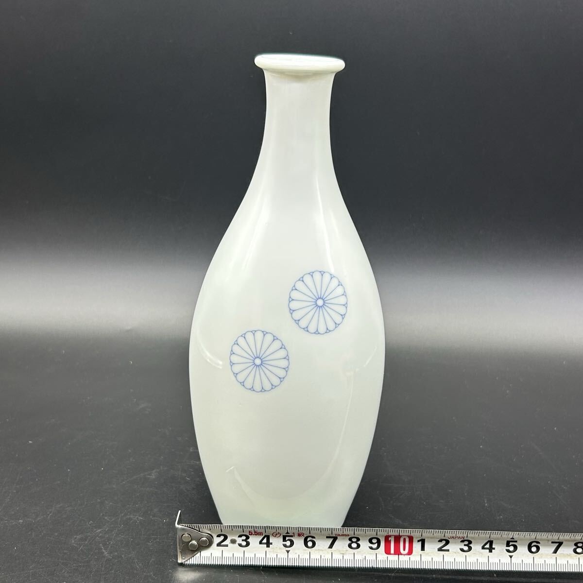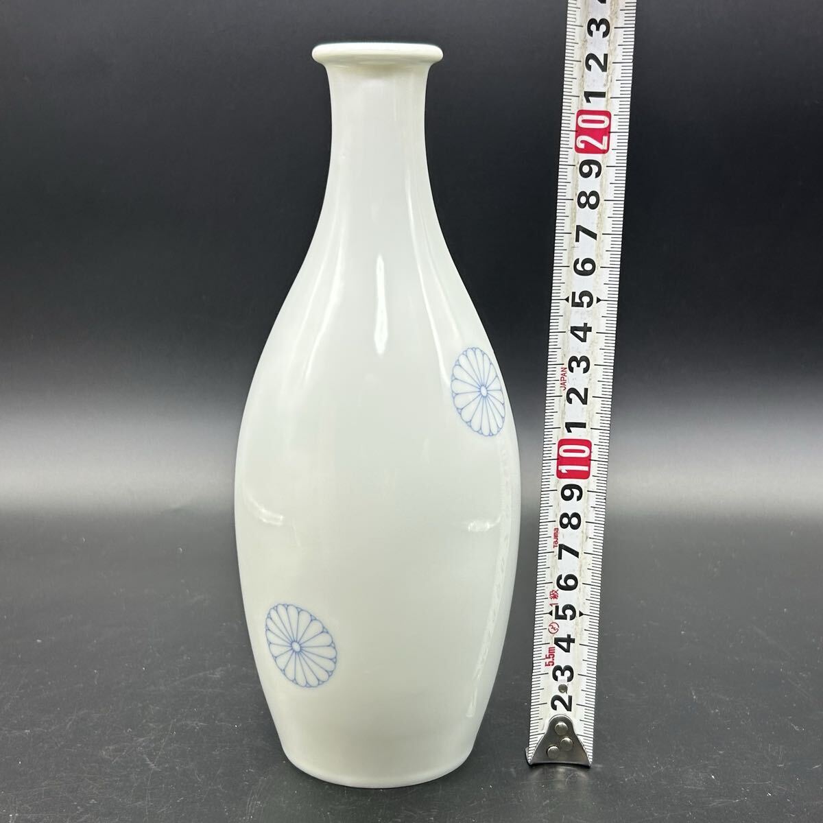 深川磁製 菊花紋入 酒器 染付 菊花紋章入 大徳利 とっくり 陶器 エ16