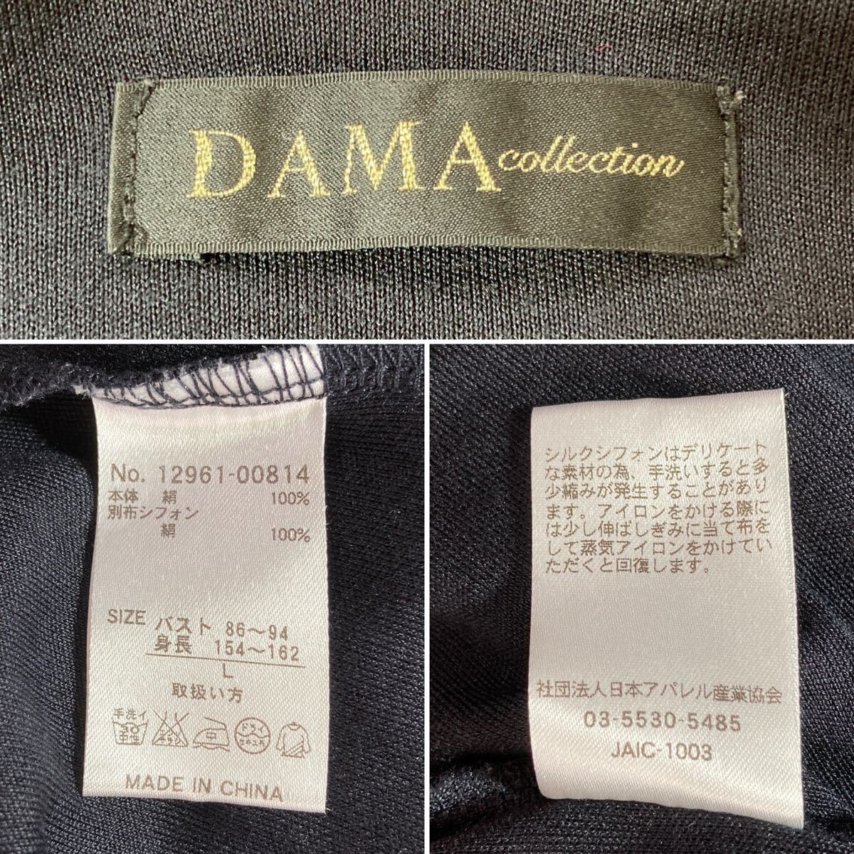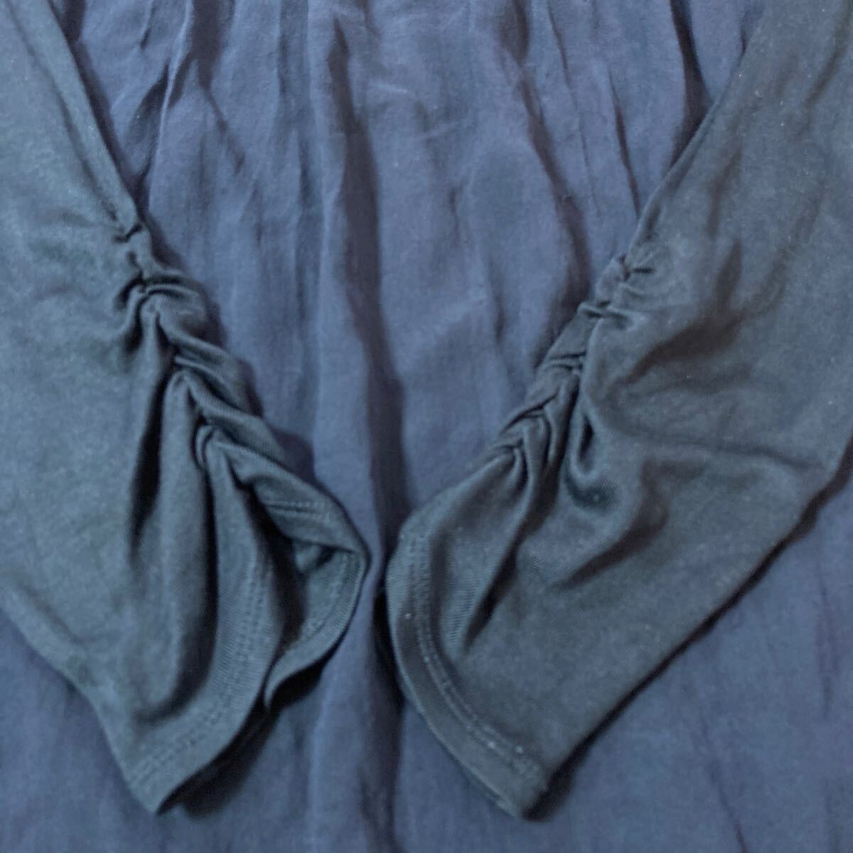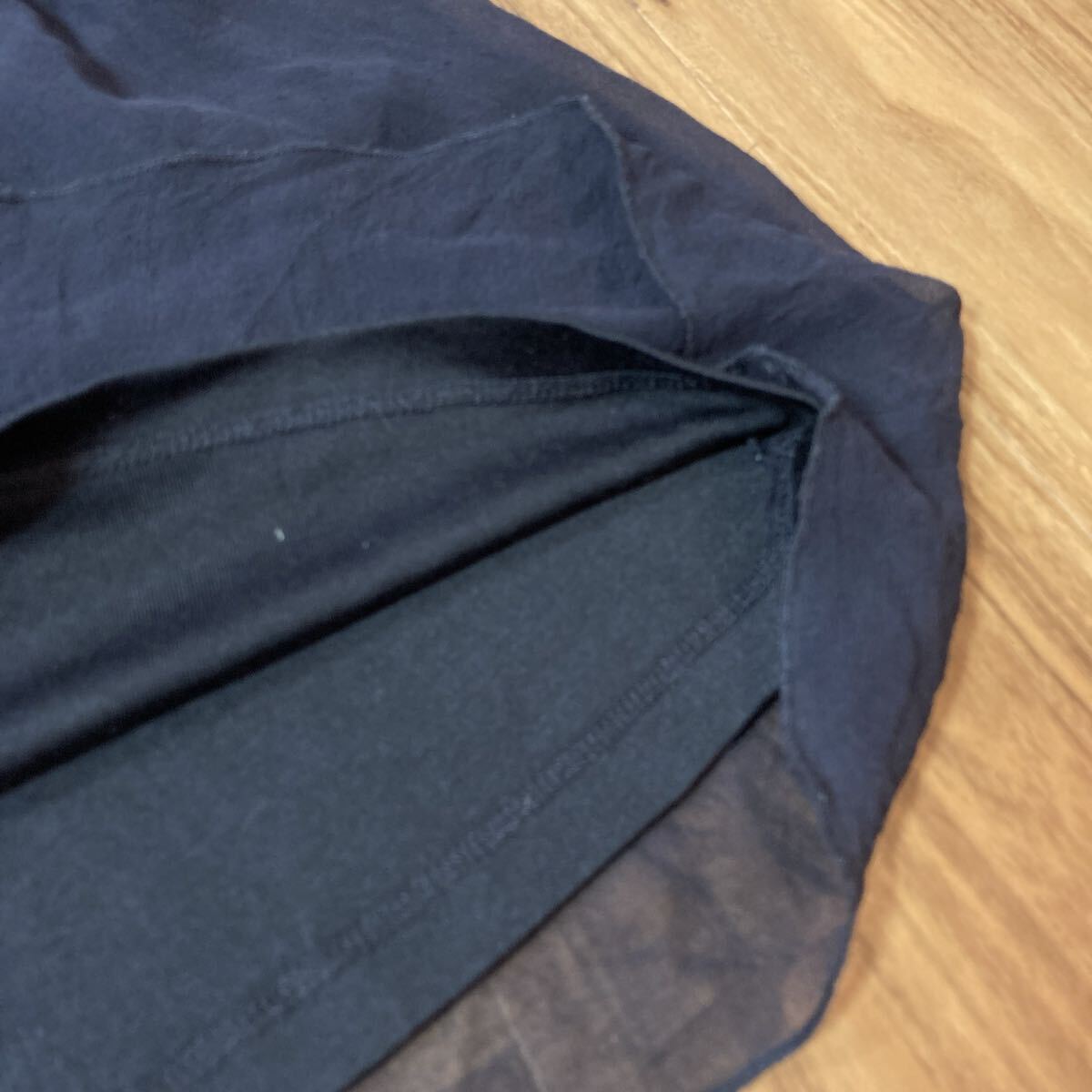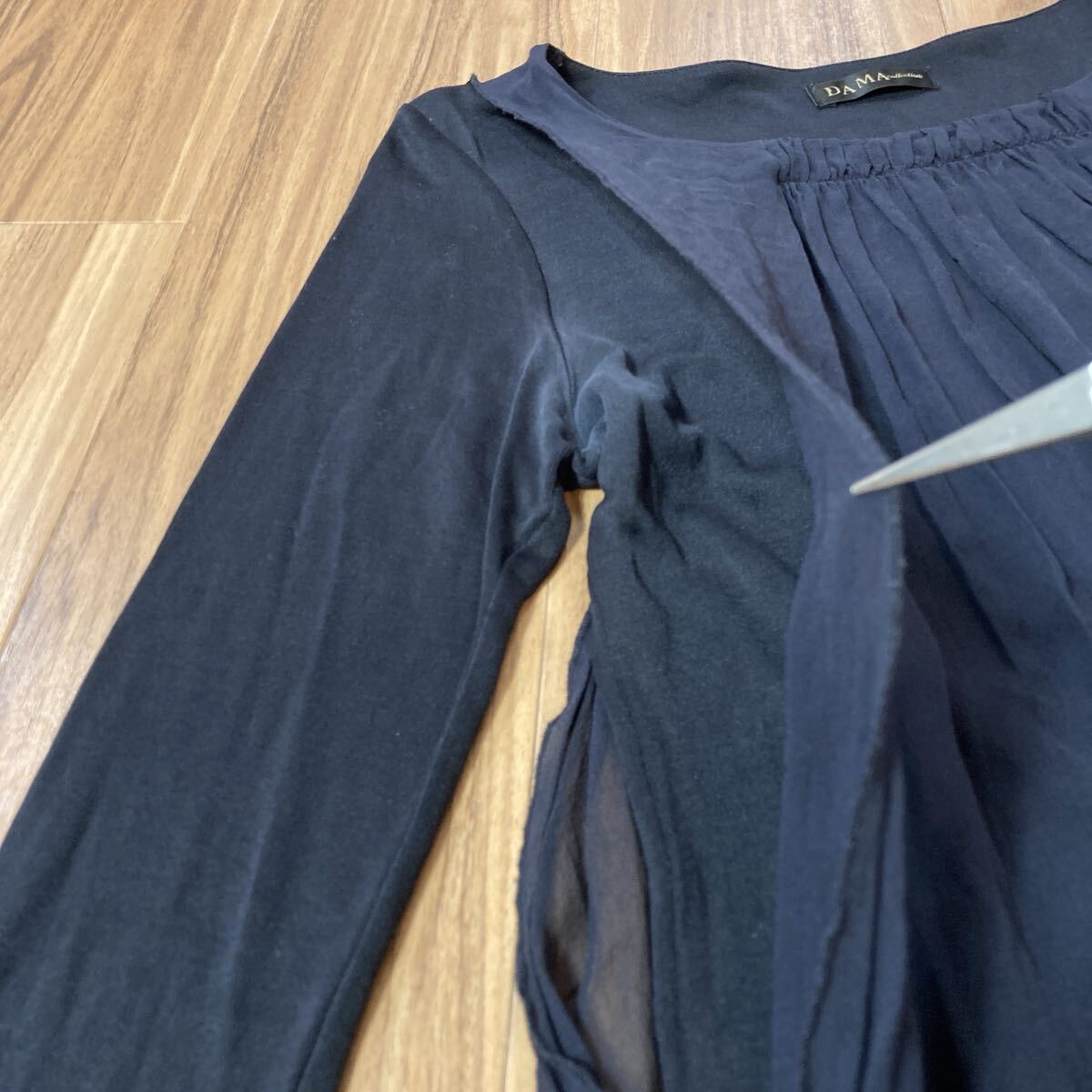YT3627 DAMA ダーマ レイヤード風シフォンチュニック サイズL ネイビー シルク100% 長袖 シルクシフォン Aラインミニワンピース ディノス
