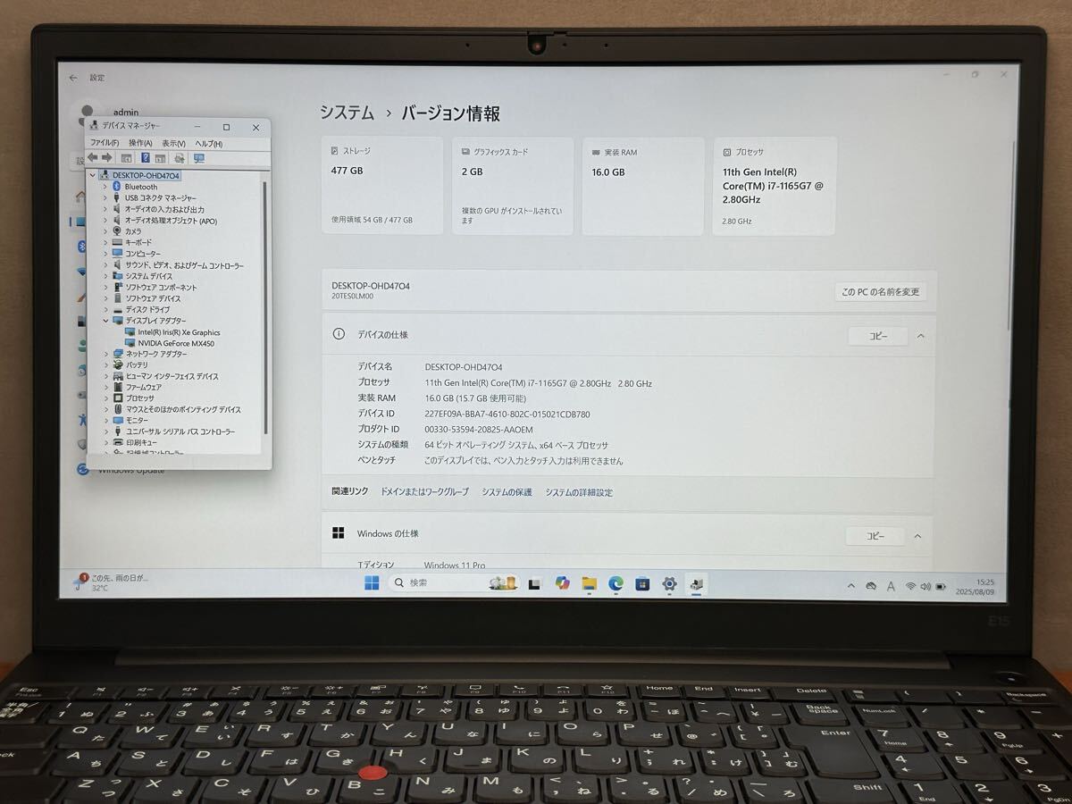・CPU: Core i7-1165G7 2.8GHz, ターボブースト: 4.7GHz 第11世代 (Tiger Lake, 2020-2021)