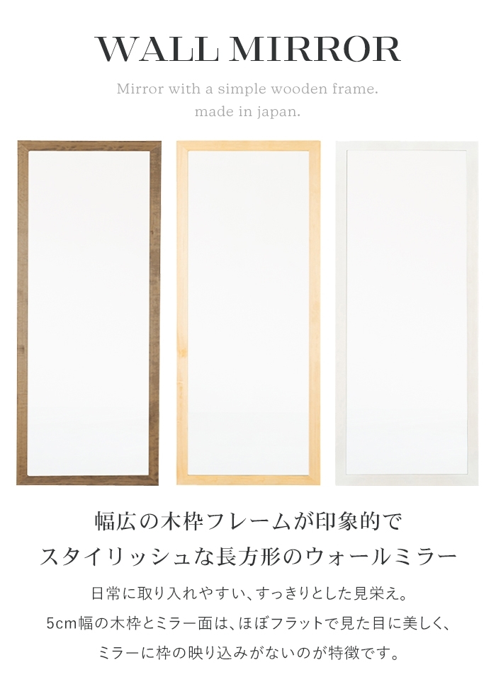 | 壁掛け鏡 姿見 鏡 ウォールミラー スリム 高さ130 幅54 日本製 壁掛けミラー 吊り下げ 全身 全身鏡 幅広枠 おしゃれ シンプル モダン 長方形 木目 完成品 上品 国産 ミラー 姿見 玄関 身だしなみ オシャレ 壁 生活 部屋 化粧 |