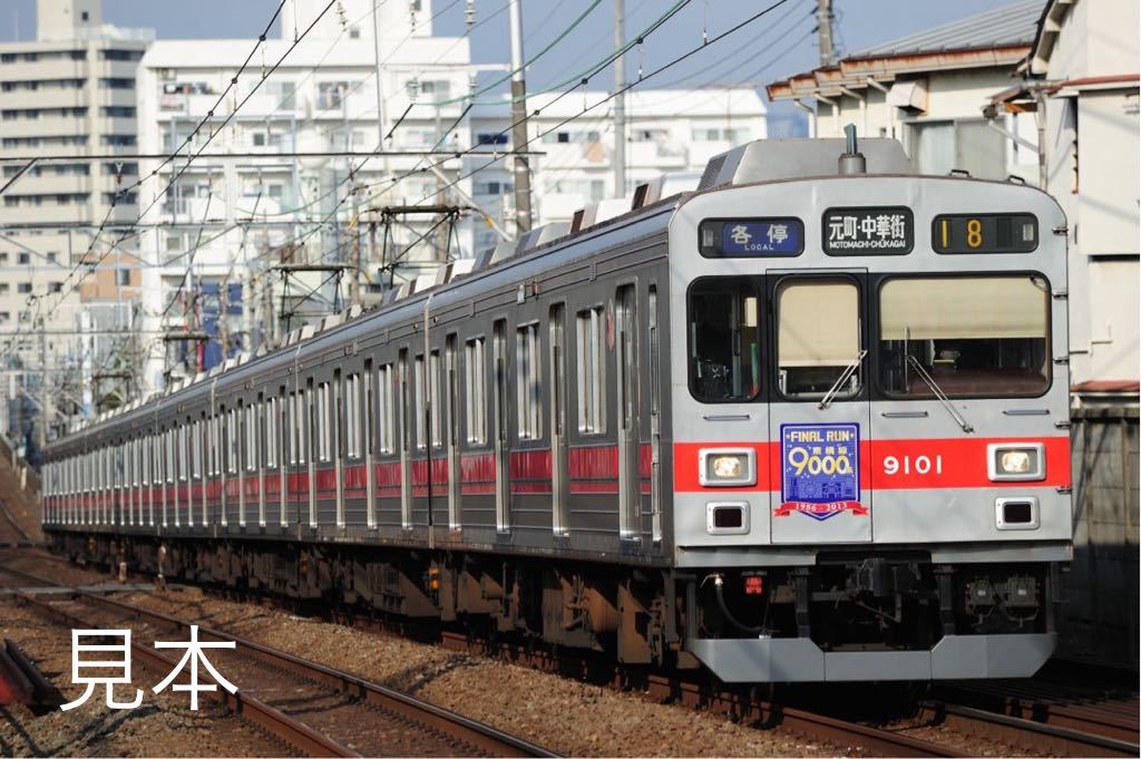 出品の写真はラストランヘッドマークを付けて東急東横線を走る東急9000系9001Fの写真でございます。