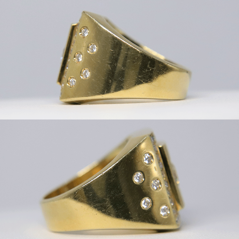 K18 ダイヤモンド 印台 リング 中D0.714ct D0.82ct #23号 重量26.1g ゴージャス 上質ダイヤ!!指輪 サイズ直しご相談ください!!
