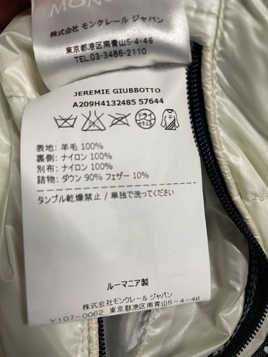 モンクレールaのJEREMIEウール ダウン ジャケット、サイズ1、美品、認証タグあり。