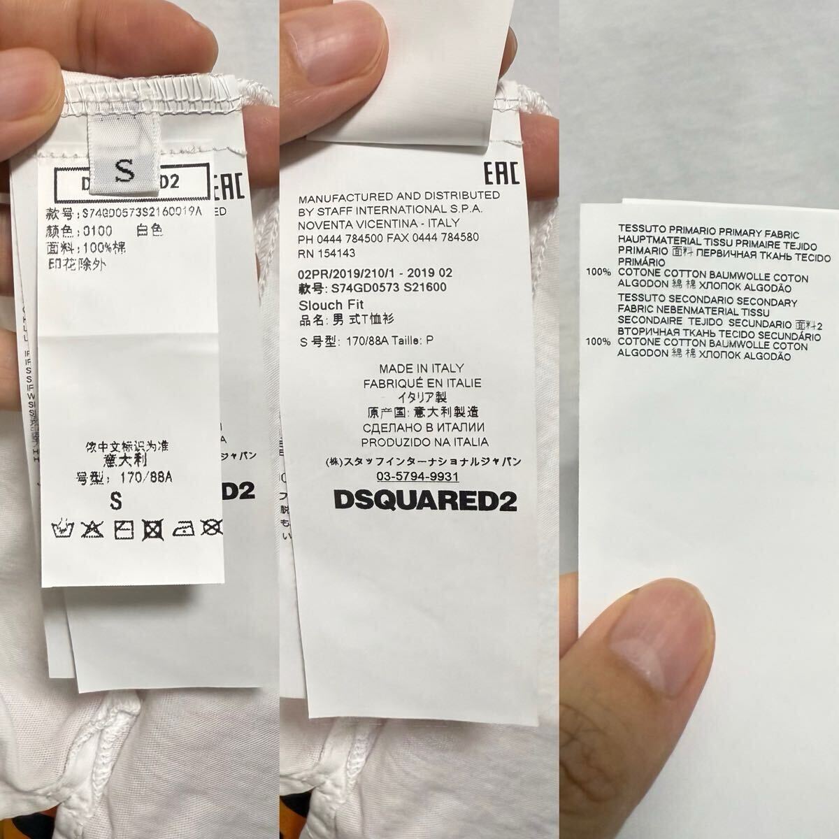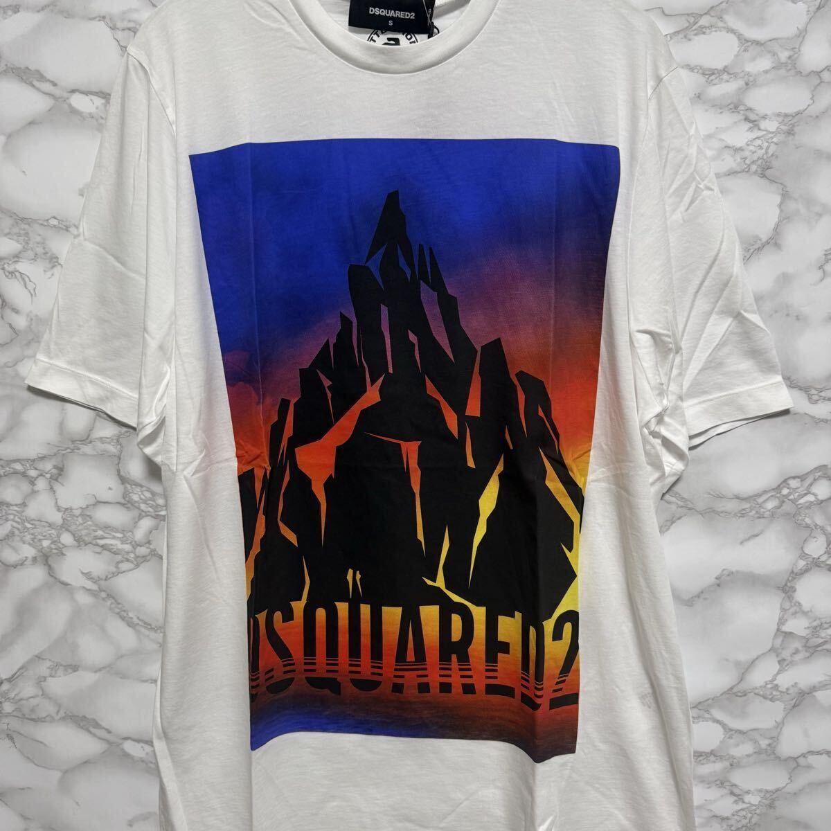 ディースクエアード dsquared2 白Tシャツ ホワイトロゴ マウントデザイン イタリア製 サイズS