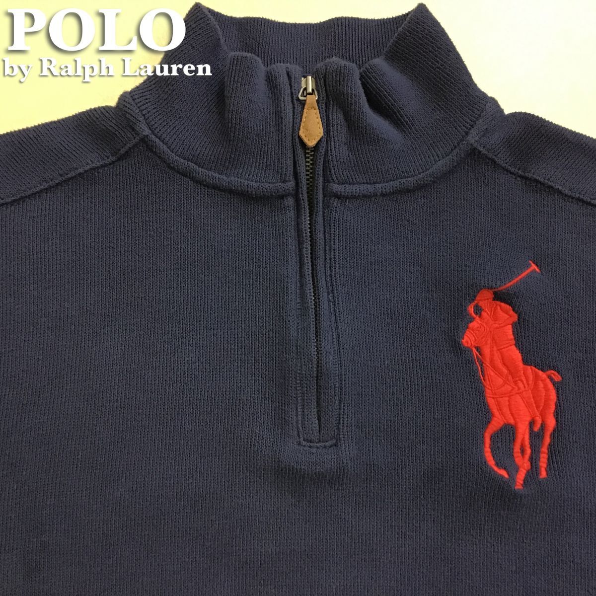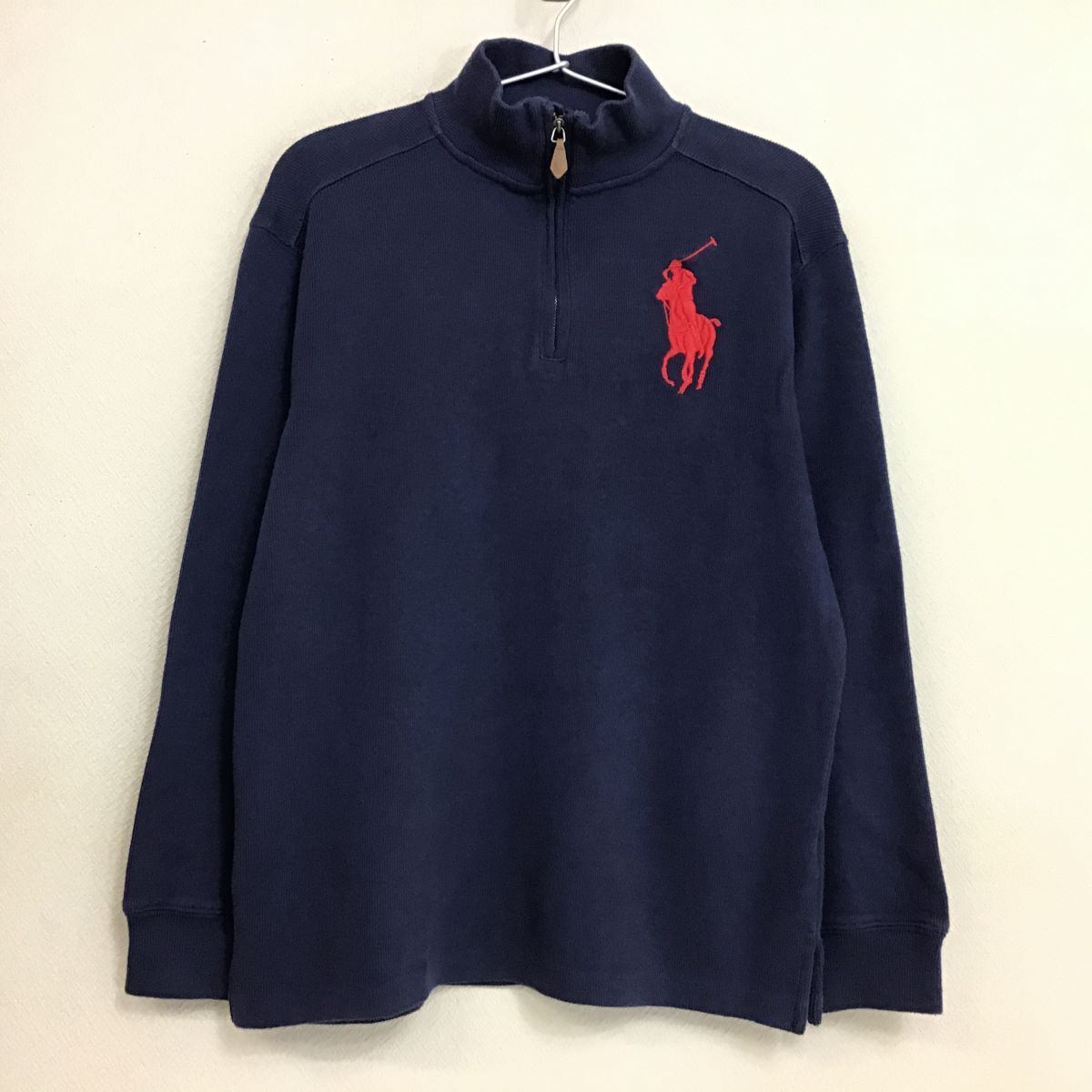 ★USA直輸入!!★正規品★【Polo by Ralph Lauren ラルフ】刺繍BIGポニー ハーフジップ スウェット【ユース L レディース S】紺 150 K2-667