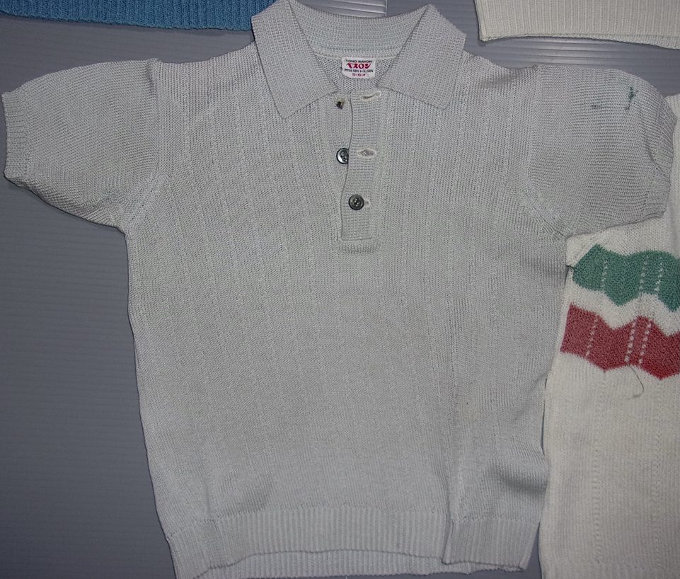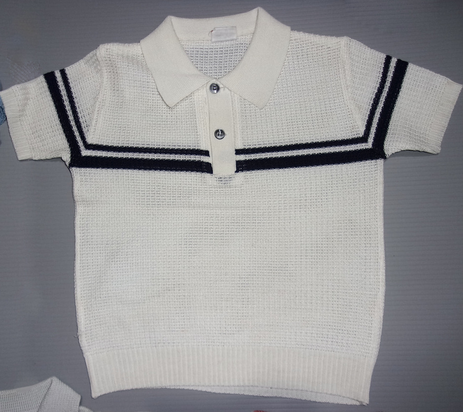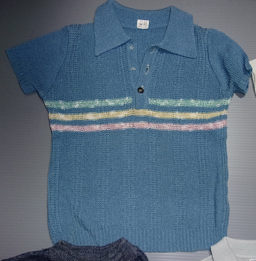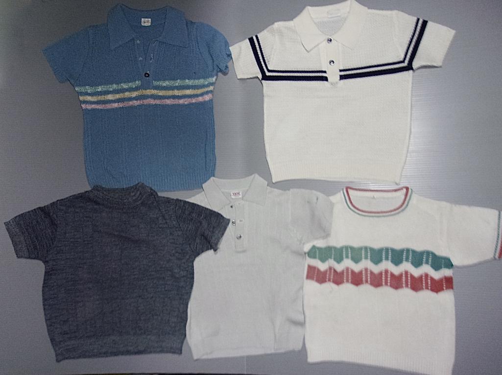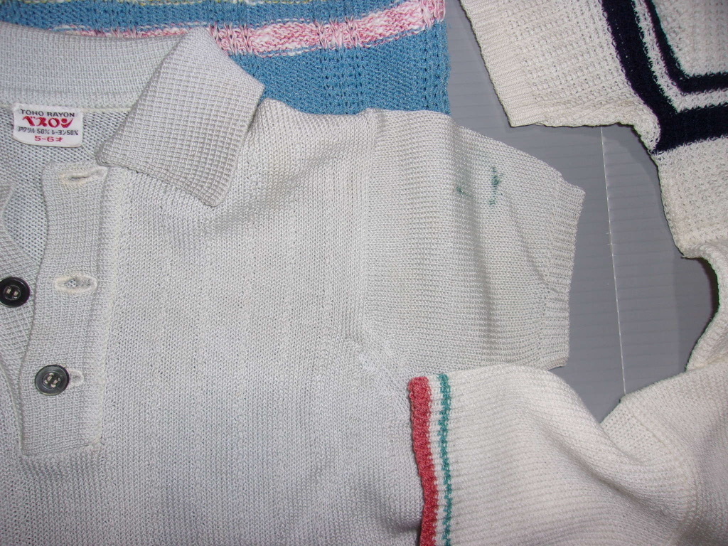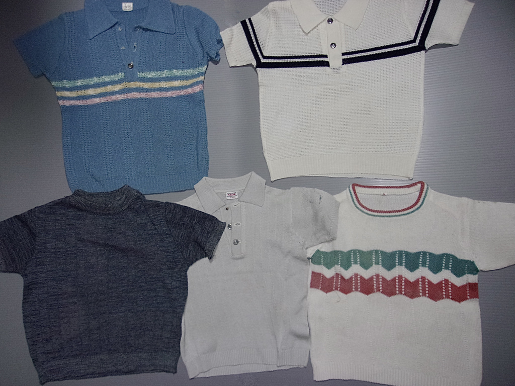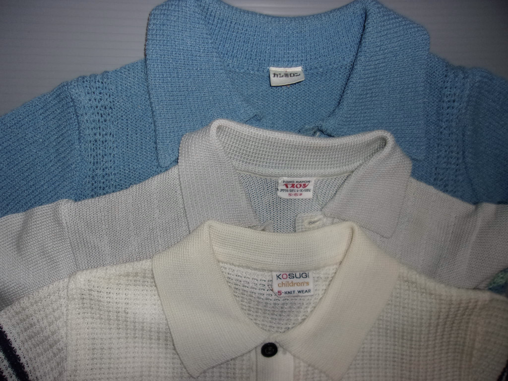 男の子サイズ、夏物商品いかがでしょうか?状態は綺麗なものと多少汚れのものとあります。写真でご判断ください。昭和40年代の古いポロシャツで独特のレトロ感があります。Used品に付きNCNRでお願いします。ですが、不衛生などと言ったことはありません。ペットや喫煙なし環境での保管品です。