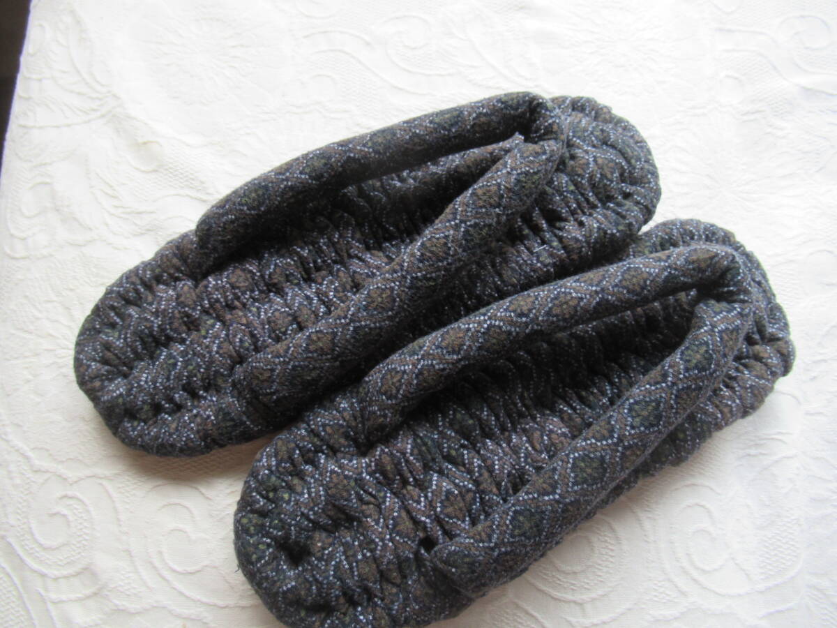 手作り 布草履 布ぞうり ダークグレー系ネル地 共布の鼻緒 27cm