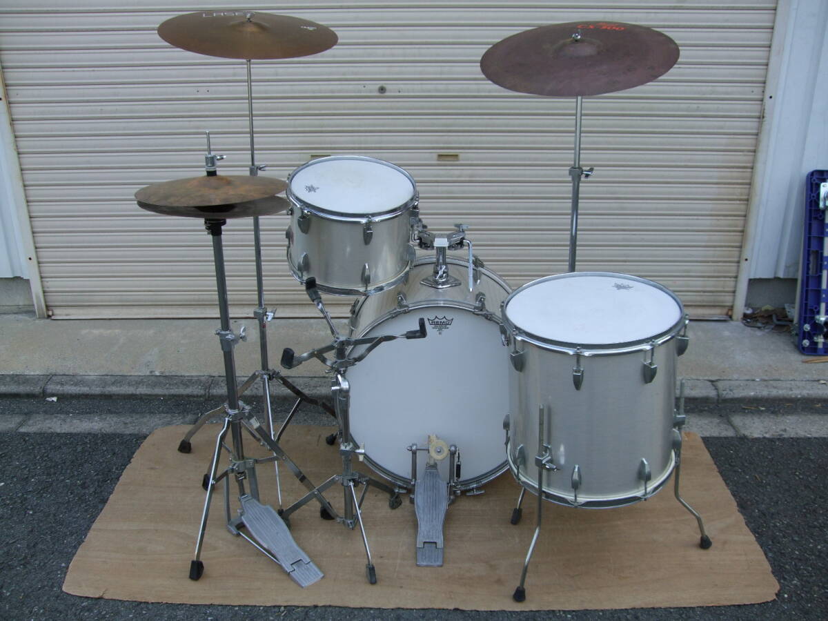 ヘアラインクローム色のビンテージドラムフルセットです。