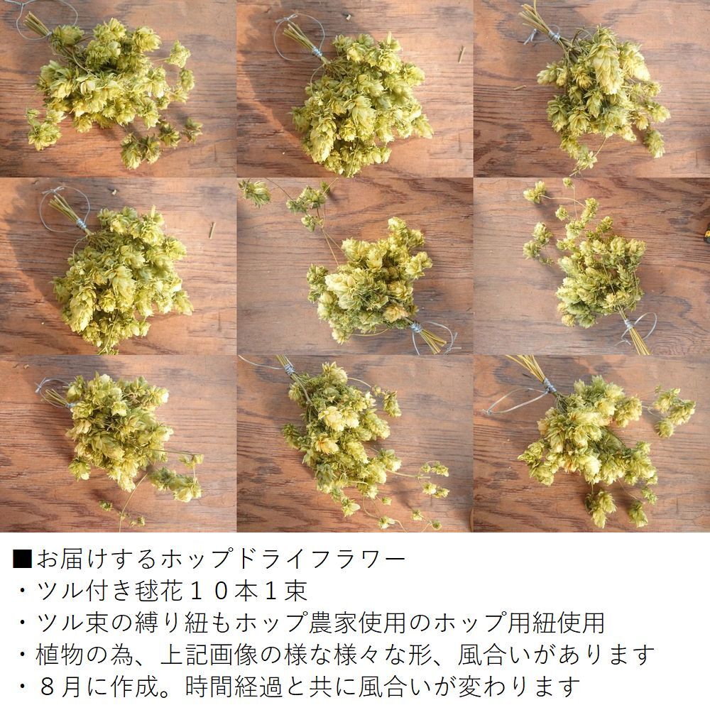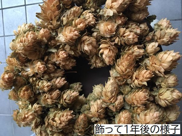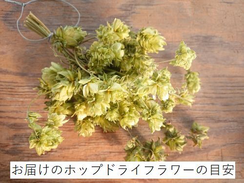 ■お送りするホップドライフラワーについて ホップ苗を専門とする花の館が生産、ビール醸造用の工程で乾燥させ、束留めはホップ生産用の紐を使った、ホップ尽くしのドライフラワーの束です。 ホップ農家さんやビール醸造用ではやらない「 ツルを残したままの乾燥 」を行う事で、植物としての成長の姿を感じる事ができます。 ホップ生産用の紐を使い束型としてまとめたので、ホップの花束として飾っても、逆さづりにしてスワッグとしてもご利用いただけます。ドライフラワーの趣も持ったビール好きにはお勧めのインテリアです