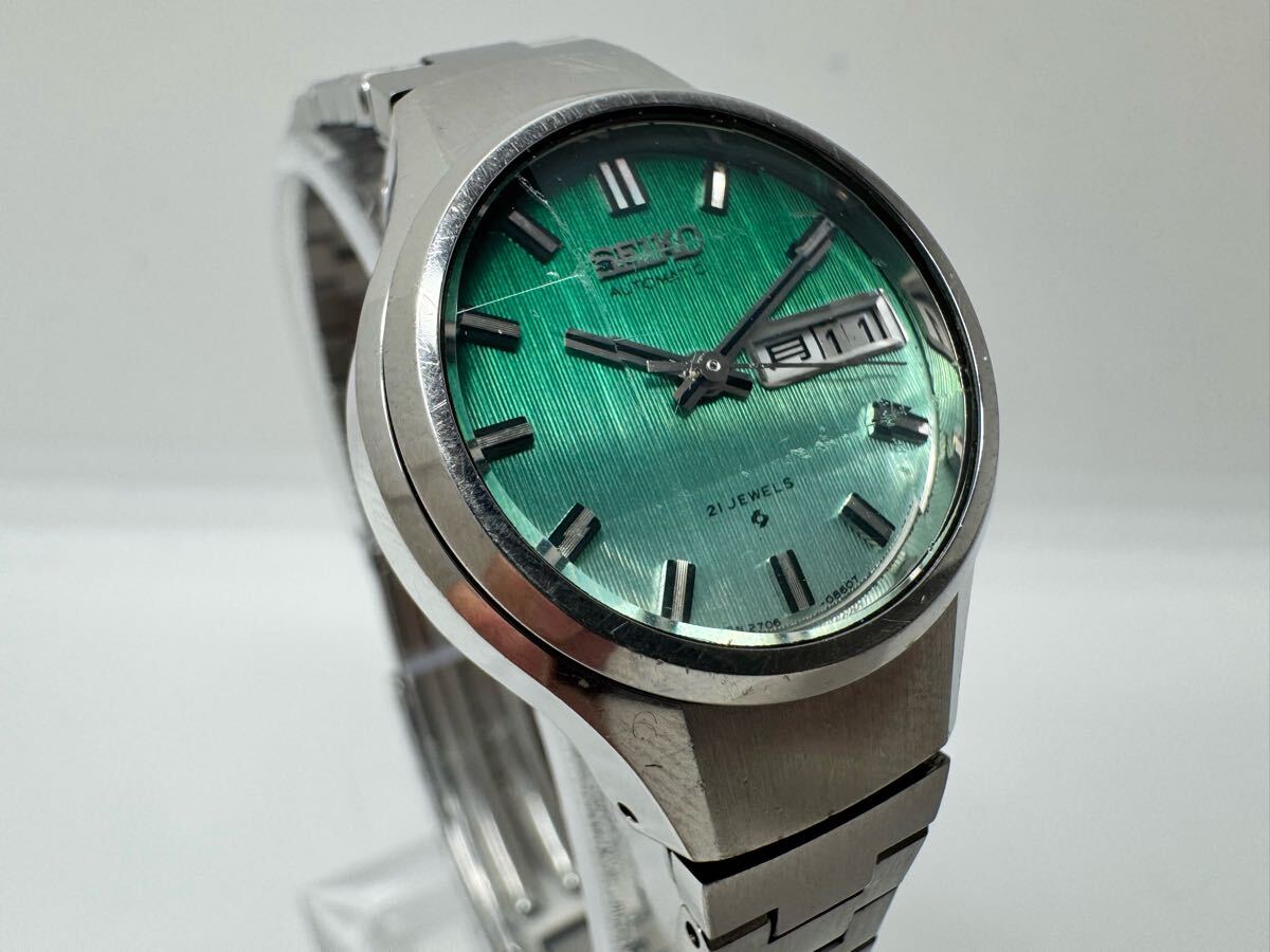 ◇SEIKO セイコー 2706-0310 AT/自動巻き グリーン文字盤 レディース腕時計 デイデイト カットガラス カット風防 ヴィンテージ 稼働品