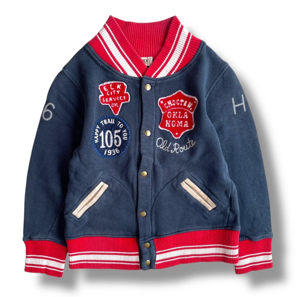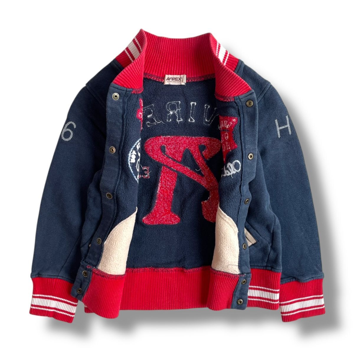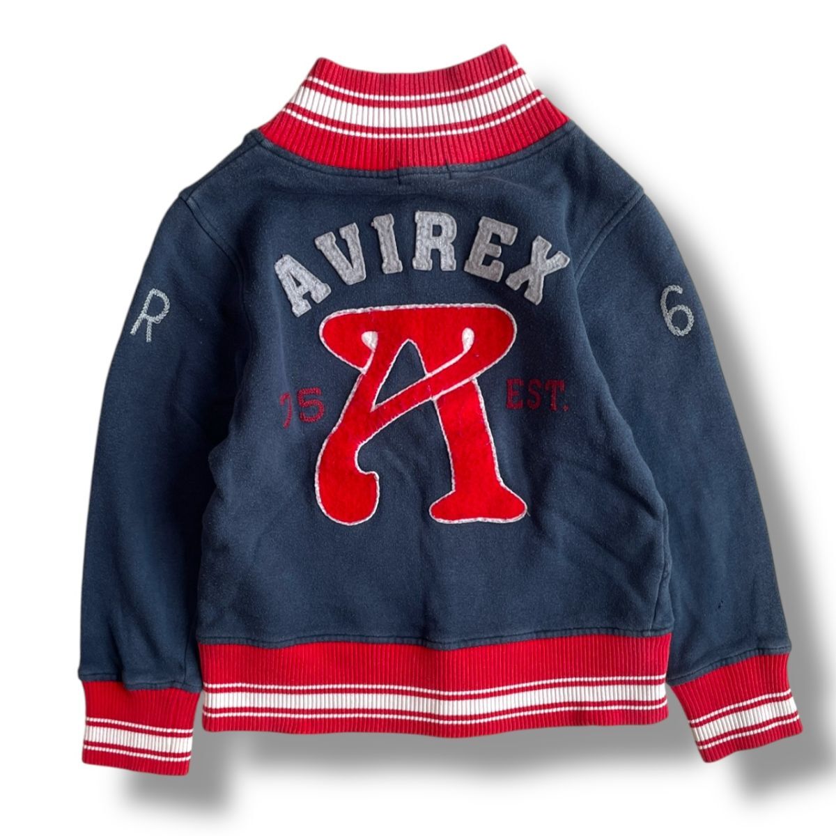 国内正規品★ AVIREX アヴィレックス キッズ スタジャン 刺繍パッチ ジャケット ブルゾン アウター 紺×赤 130サイズ コットン 刺繍 子供服