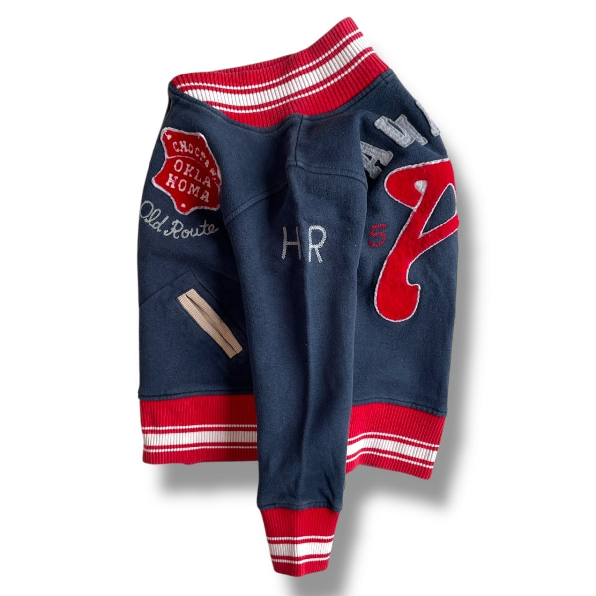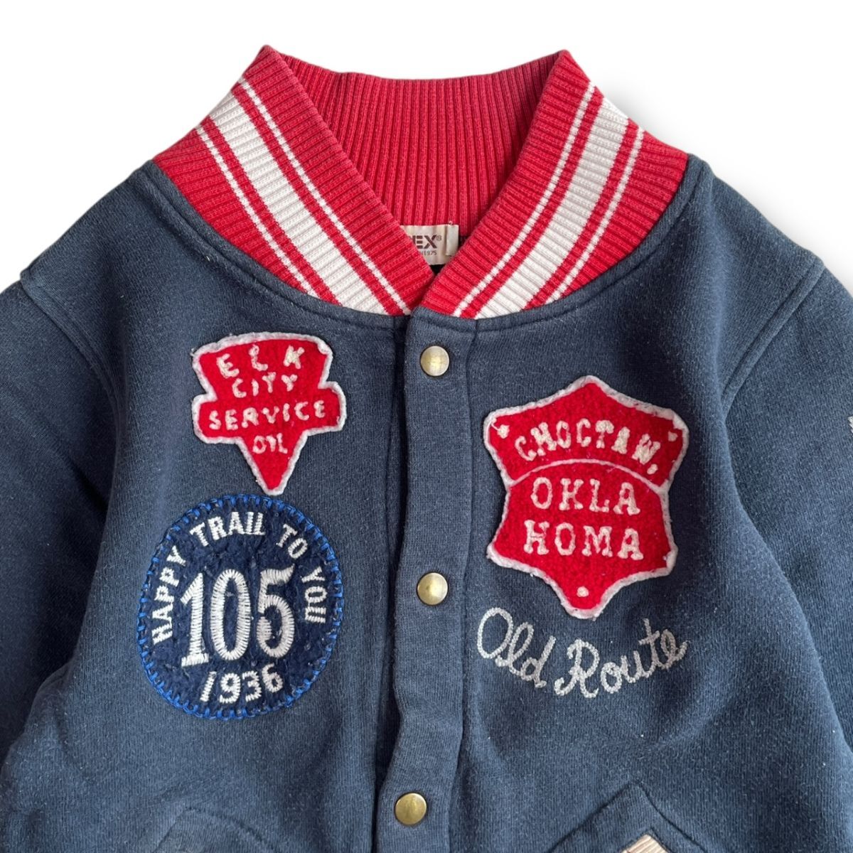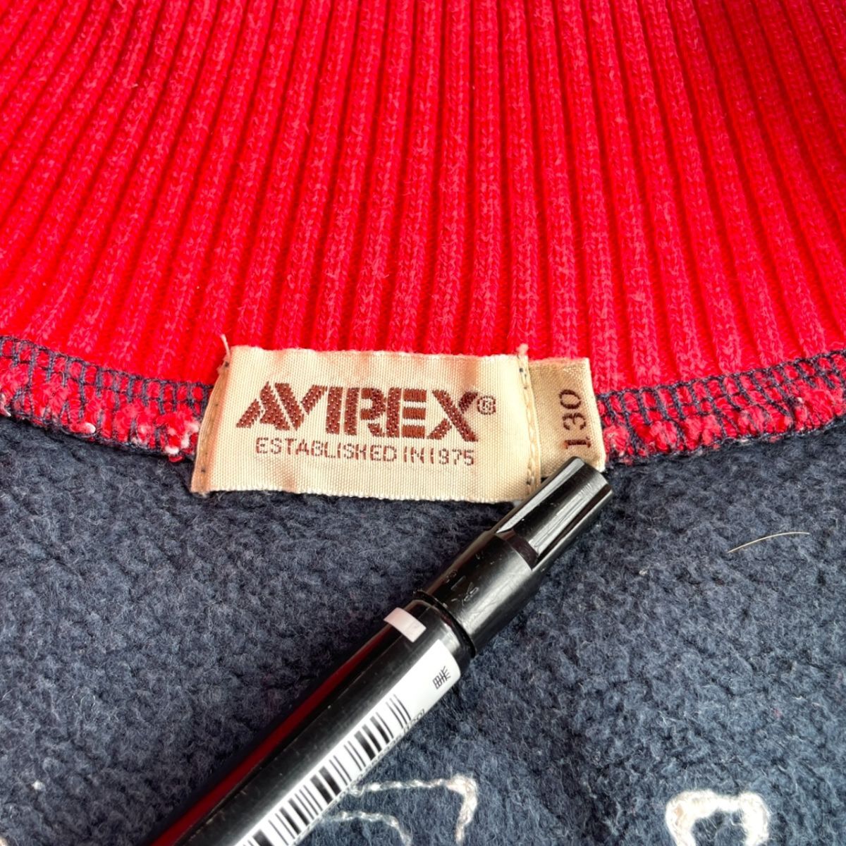 国内正規品★ AVIREX アヴィレックス キッズ スタジャン 刺繍パッチ ジャケット ブルゾン アウター 紺×赤 130サイズ コットン 刺繍 子供服