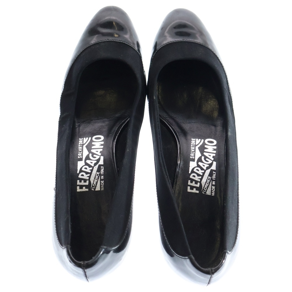 Salvatore Ferragamo サルヴァトーレ フェラガモ パテント ポインテッドトゥ ウェッジソール パンプス レディース ブラック