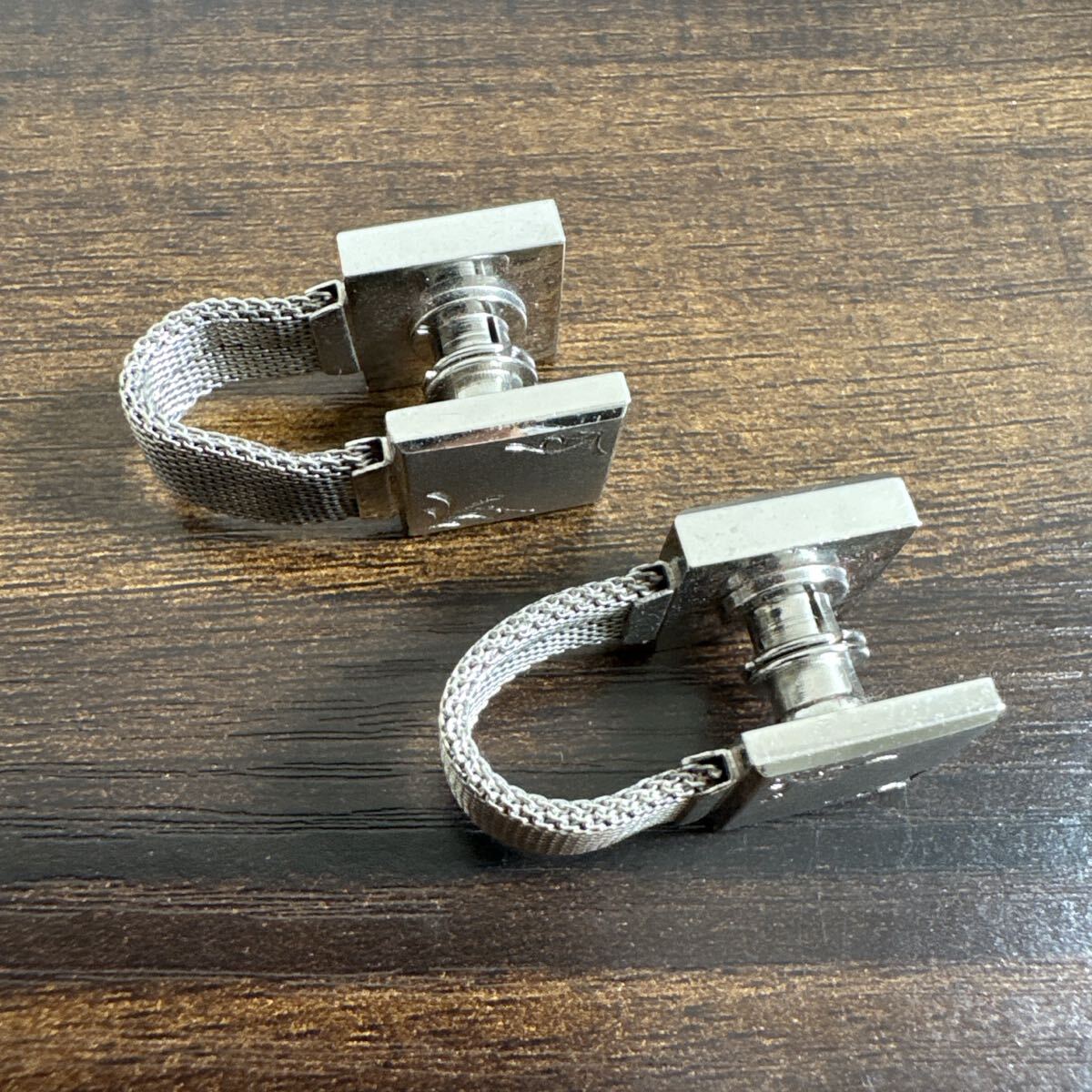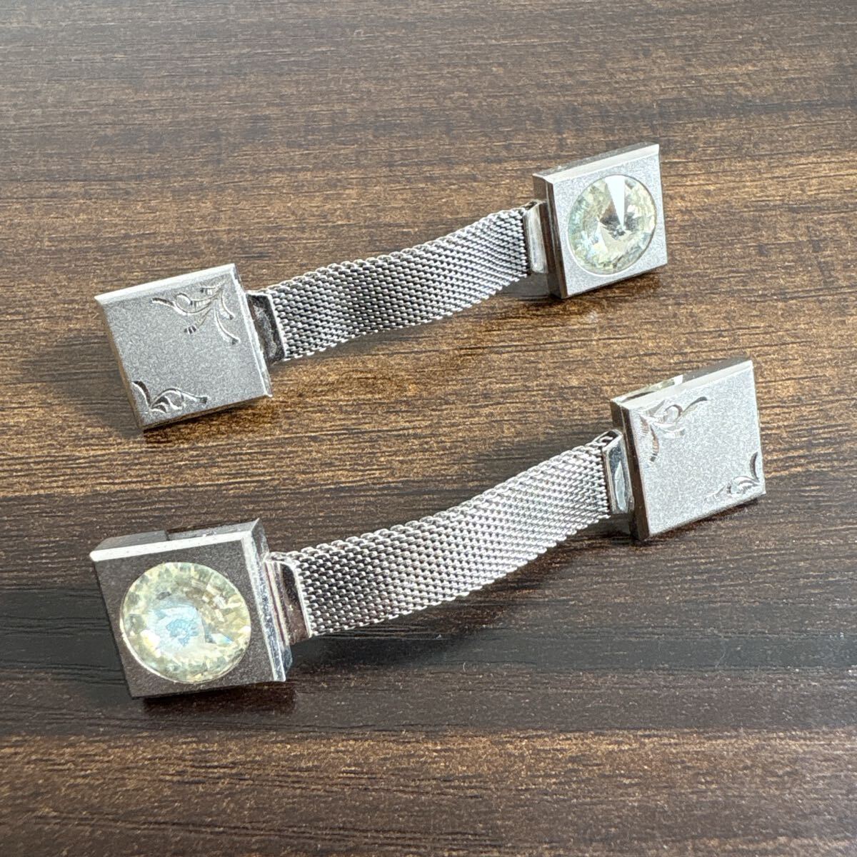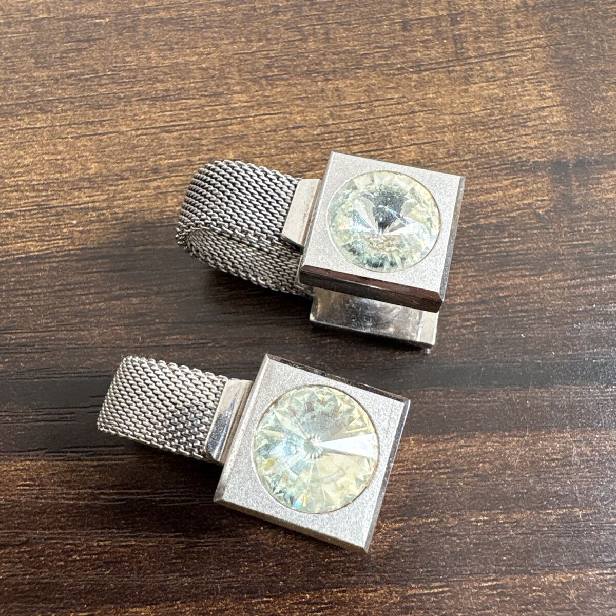 シルバーのメッシュバンドにクリスタル装飾のカフリンクス。