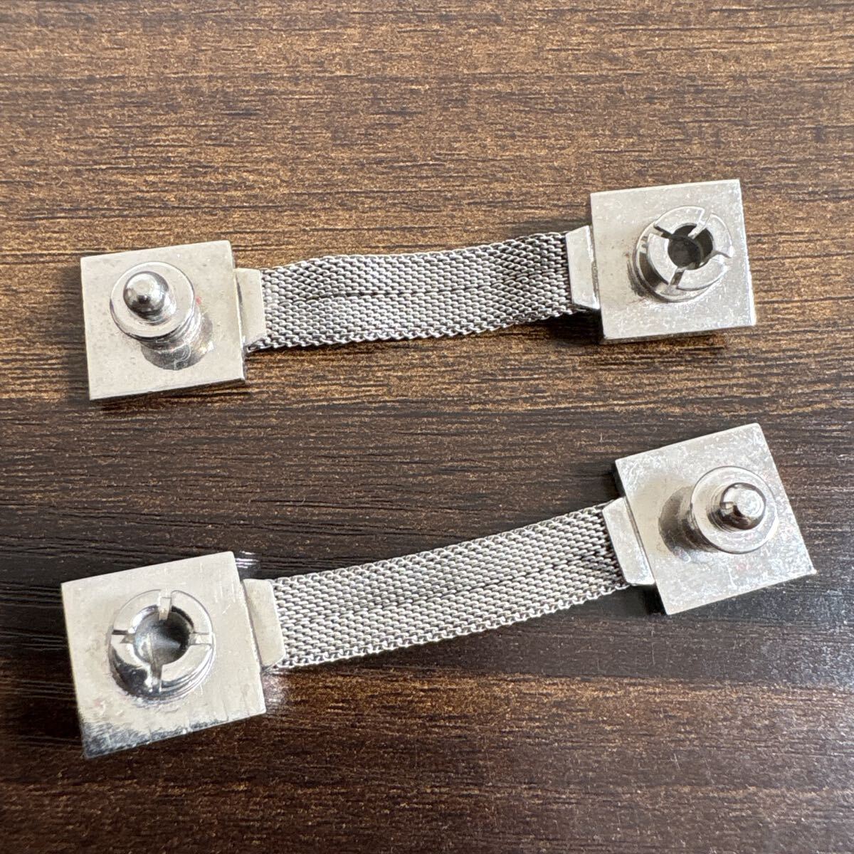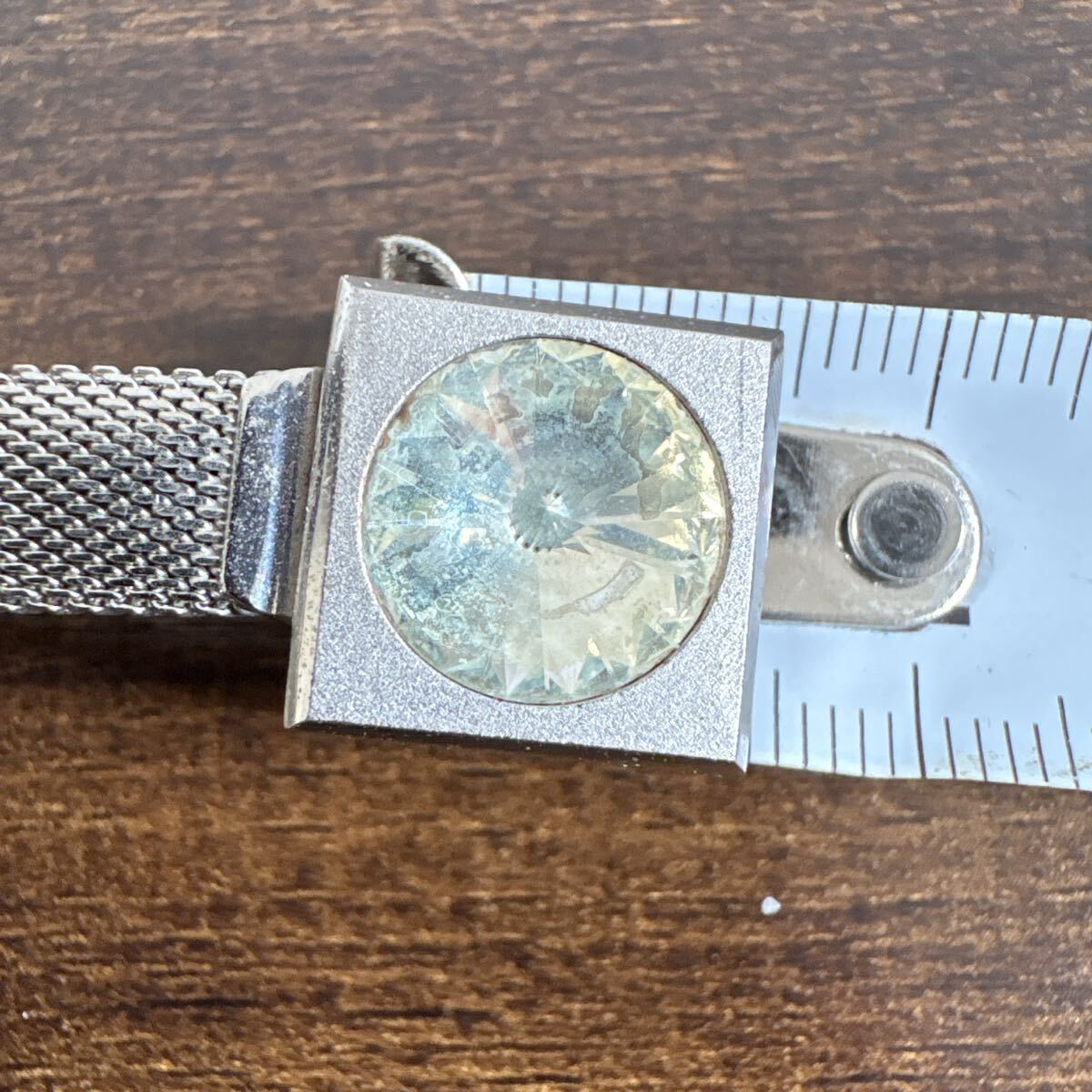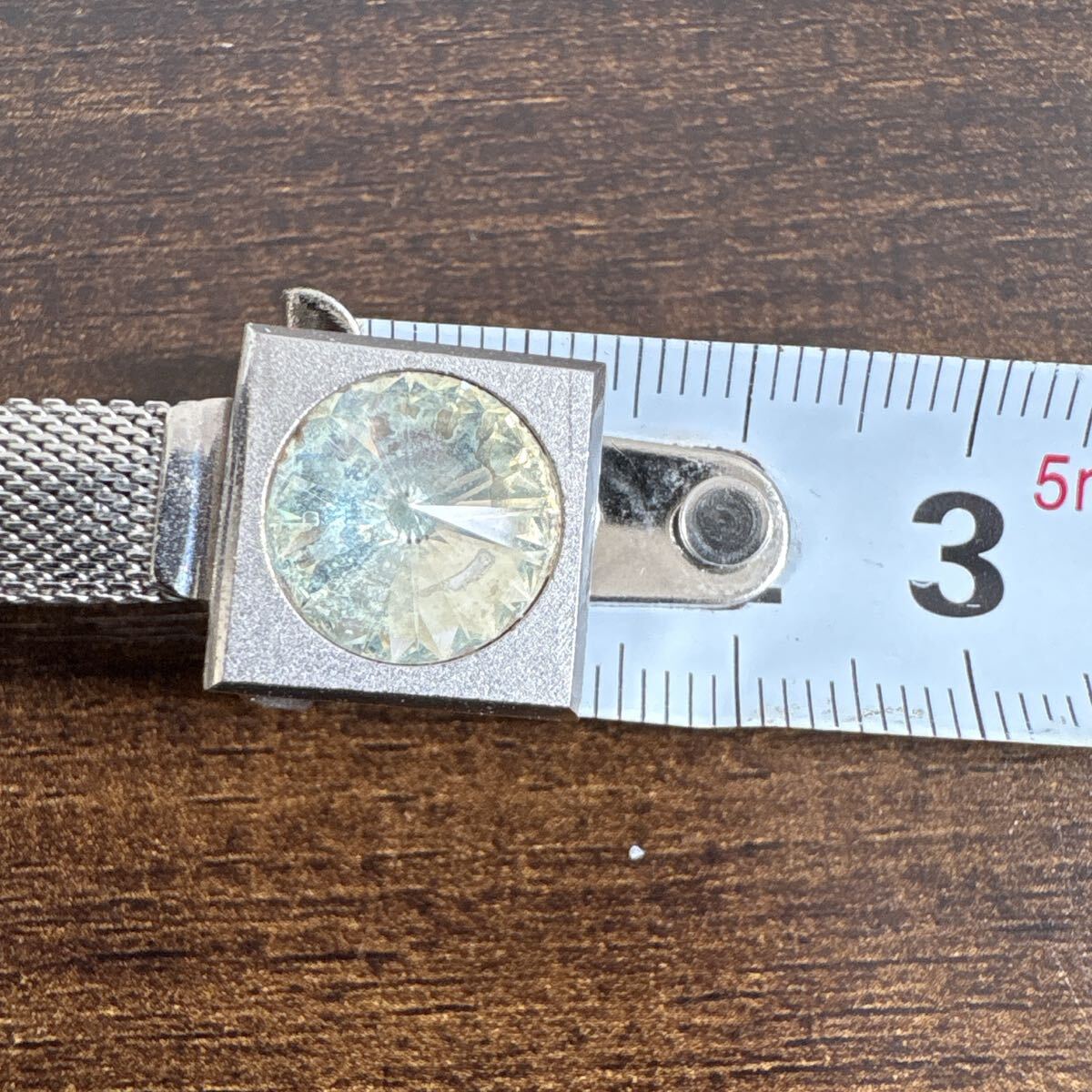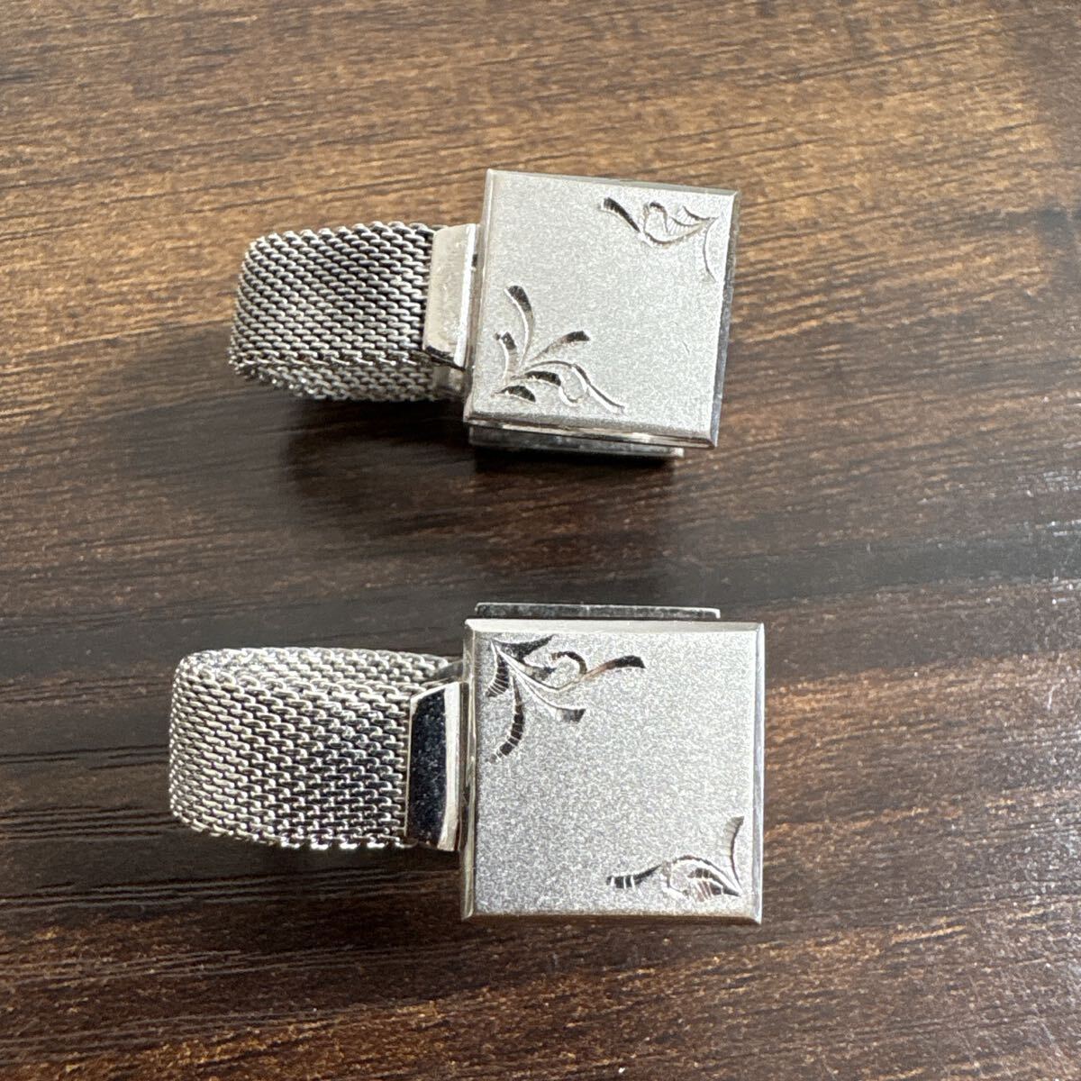 シルバーのメッシュバンドにクリスタル装飾のカフリンクス。