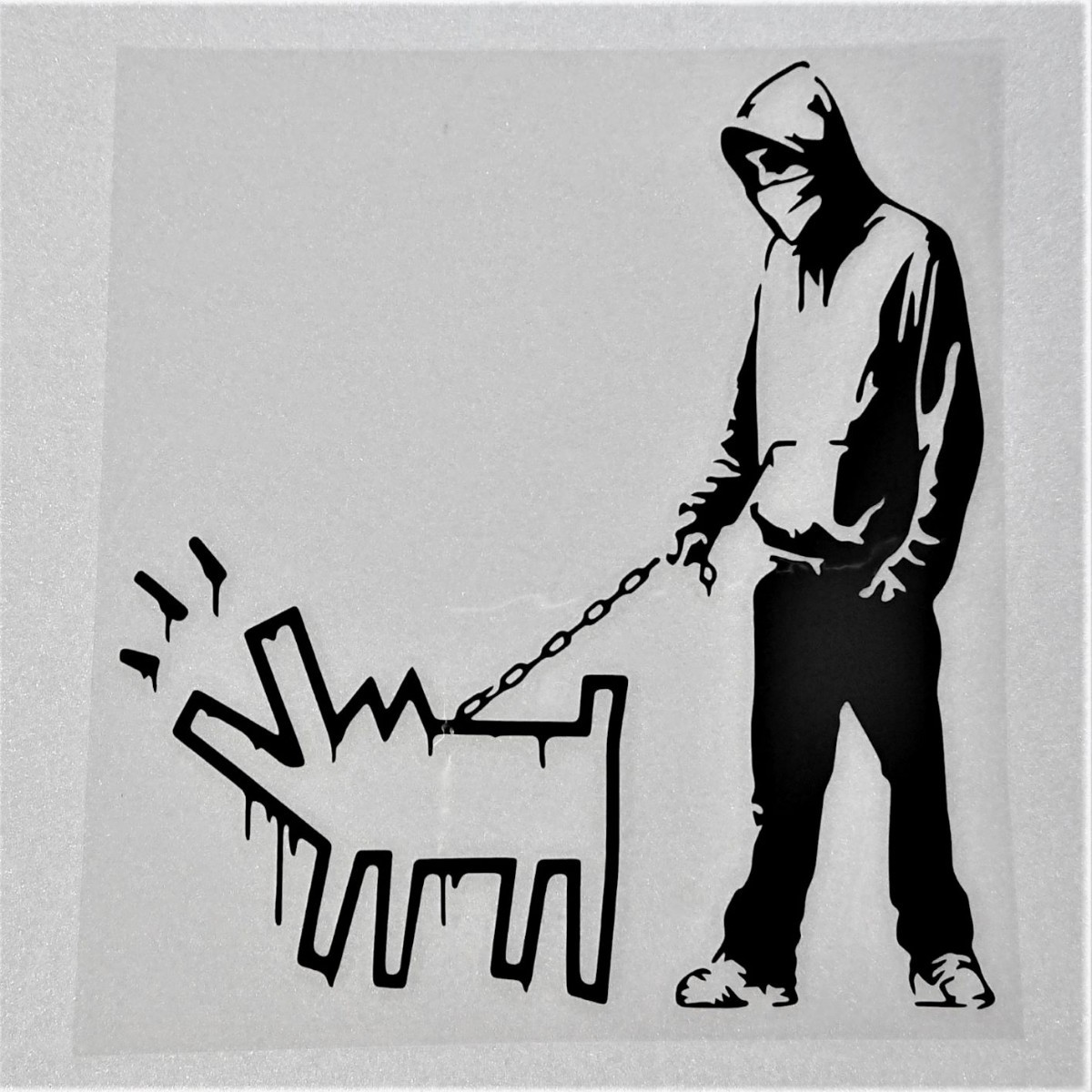 バンクシー カッティングステッカー キースヘリング犬 散歩 黒「Choose Your Weapon」