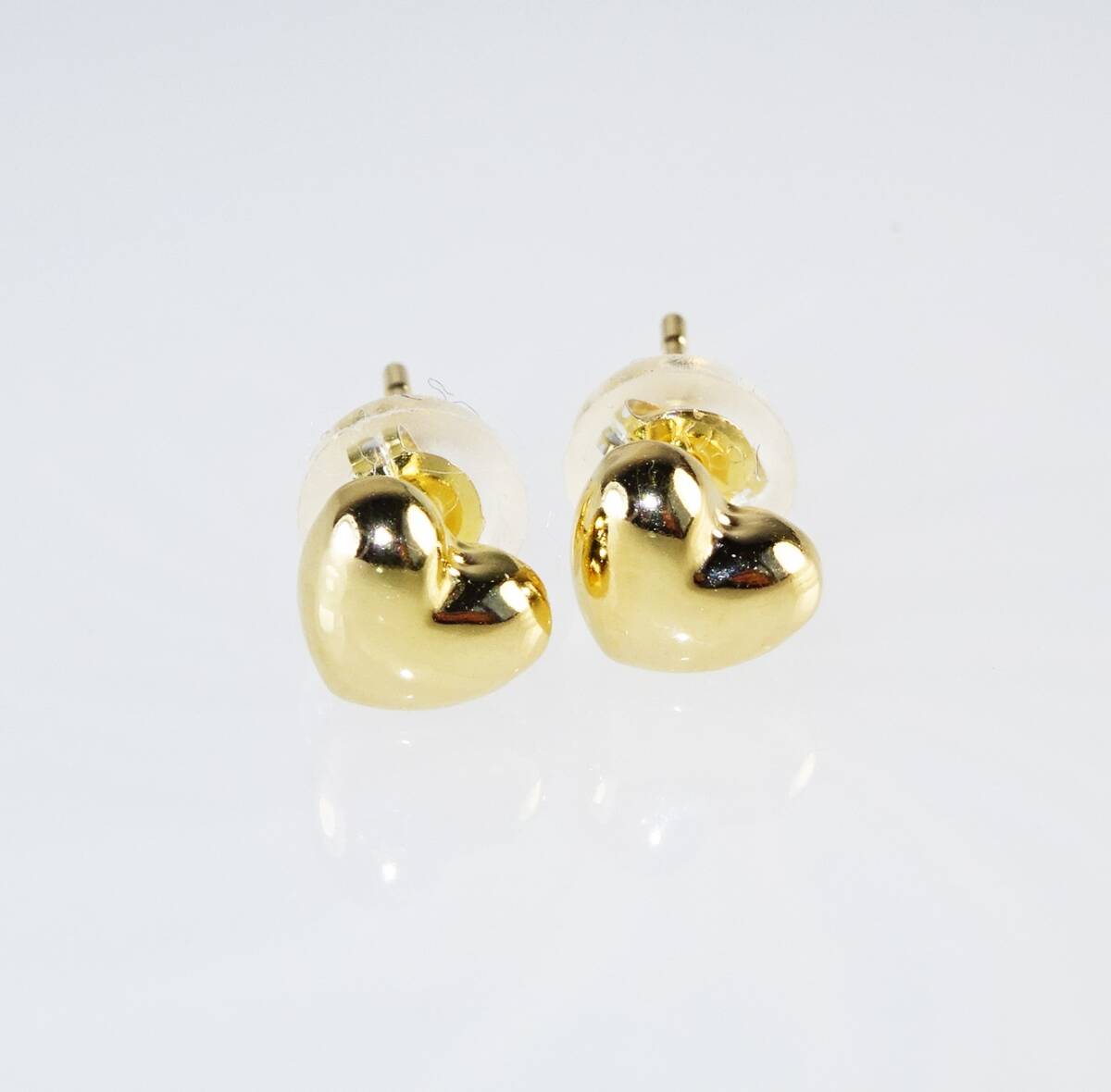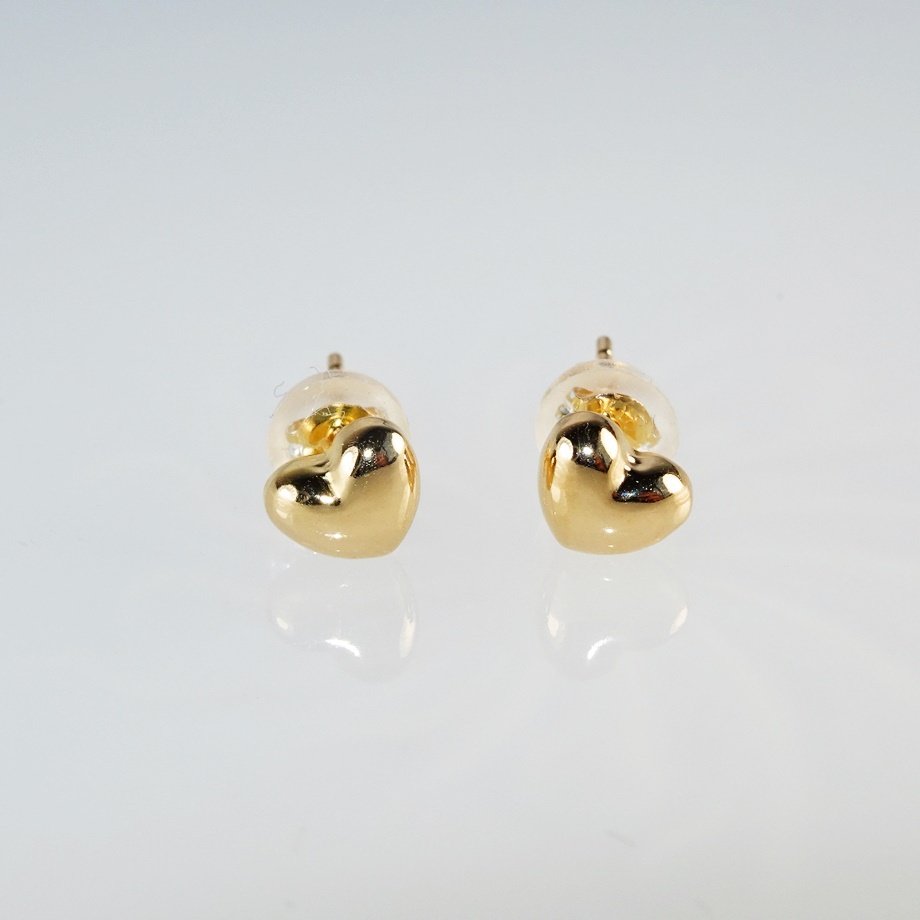 シンプルなのに、印象に残るむっくりハートのポストピアス!K18ハート5mm玉ピアス 新品未使用品◇おまけ付(シリコンキャッチ)♪