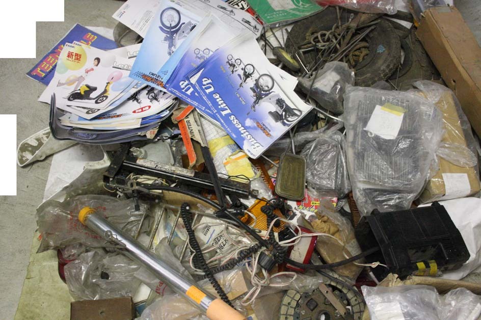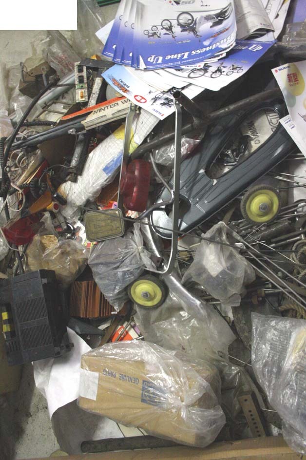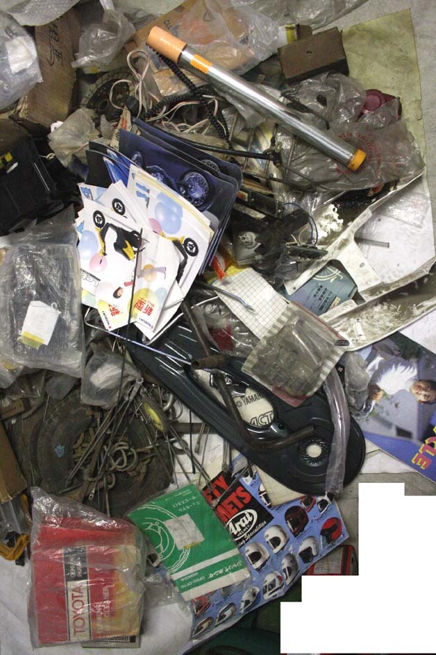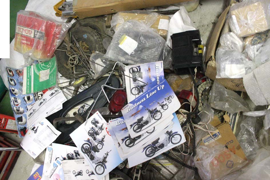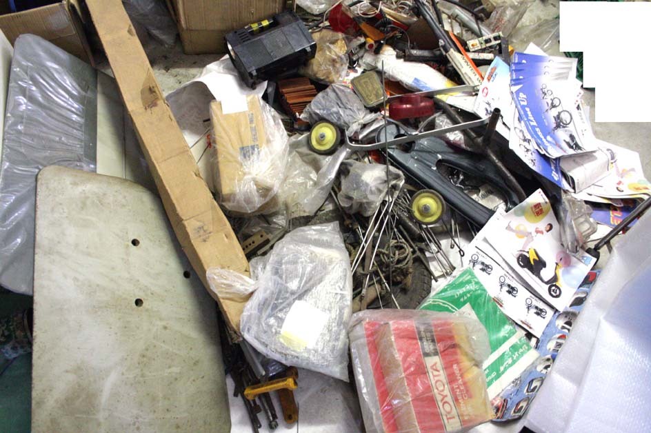 膨大な量の、50s~00s頃の、バイク、4輪車、自転車の部品や、カタログ、SM,パーツリストや 小物部品や、特殊ネジ、特殊金物など、膨大な量の多数1山1セットです。