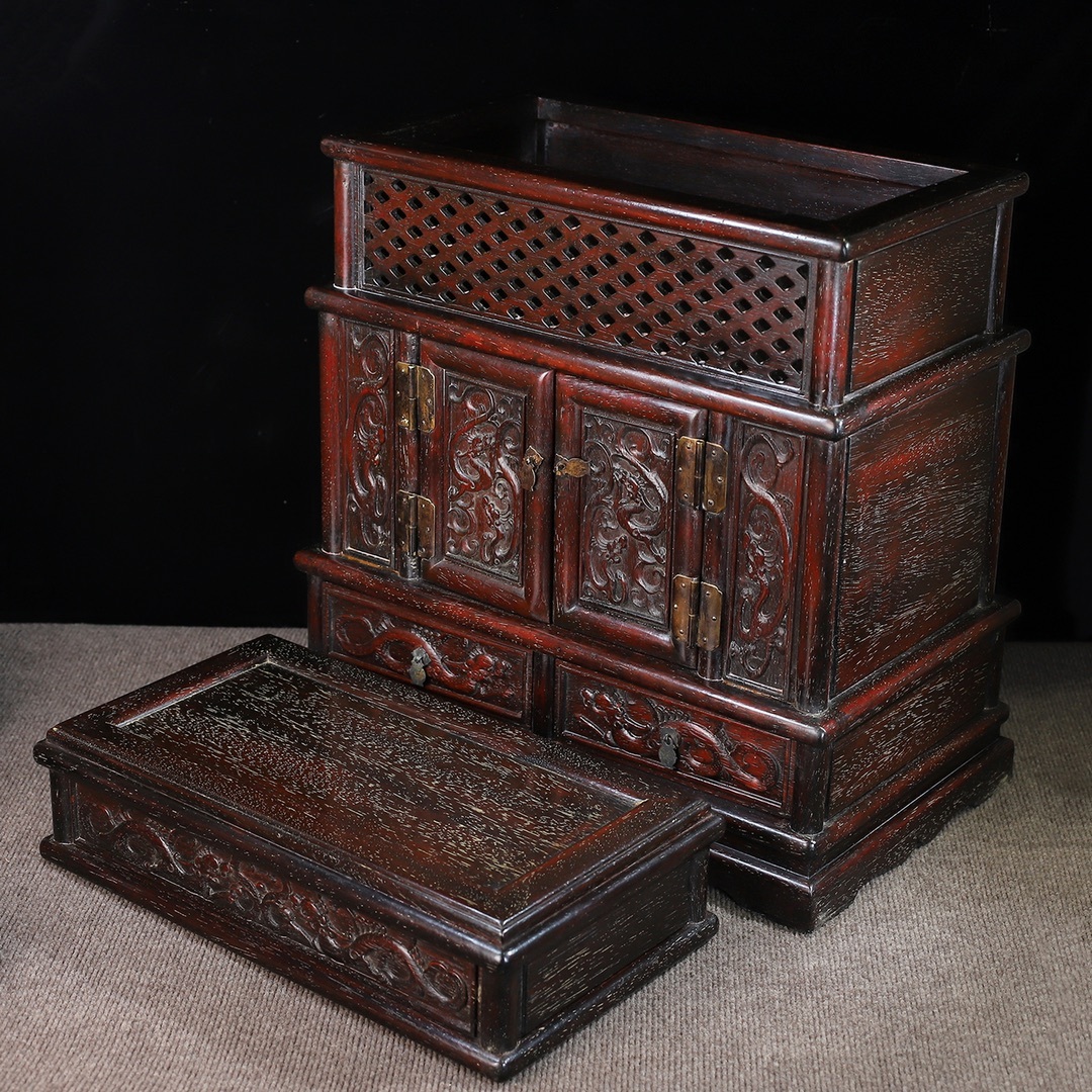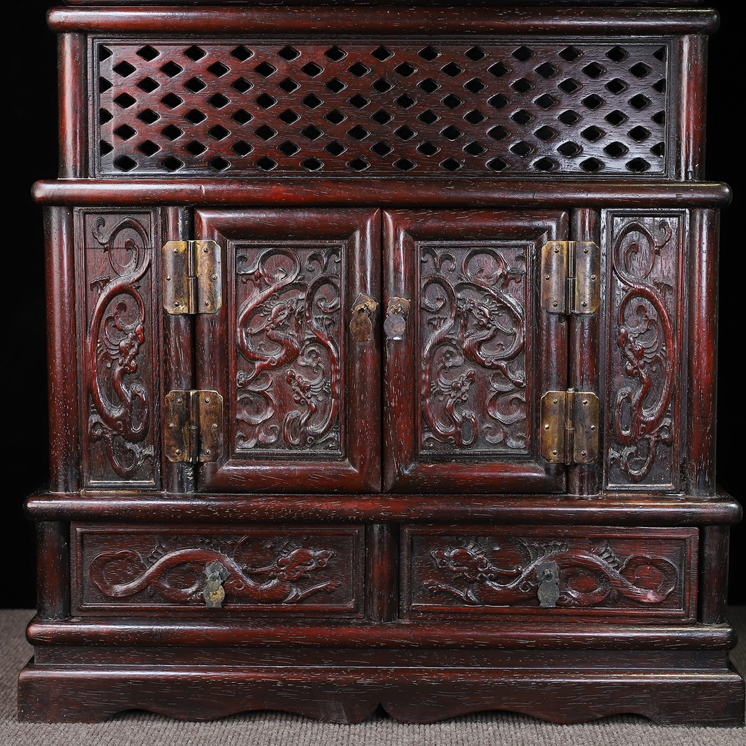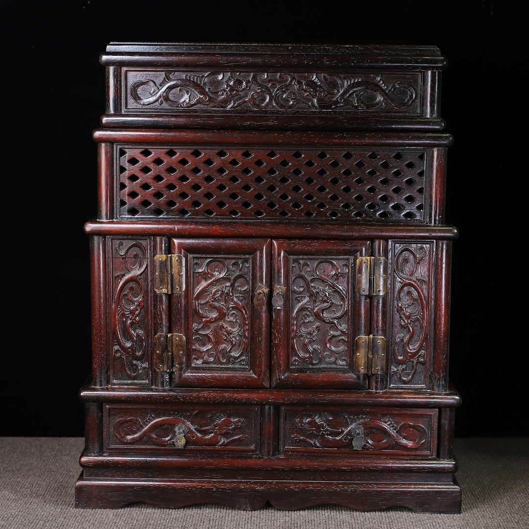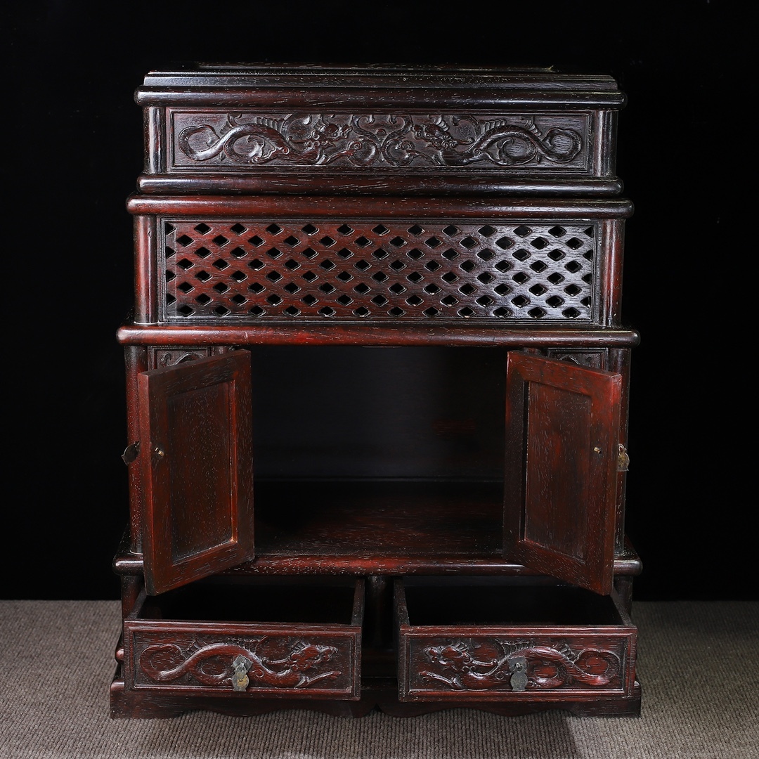 唐物 清 紫檀木 浮彫 キレート龍雙抽多寶櫃 包漿醇厚 細膩温潤 木製 極細工 中国古玩 骨董品 古美味 D68