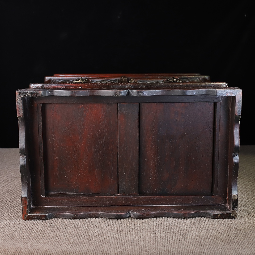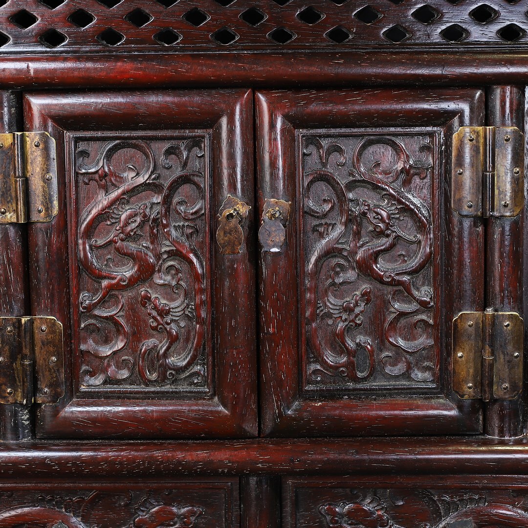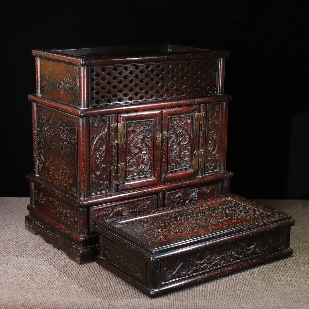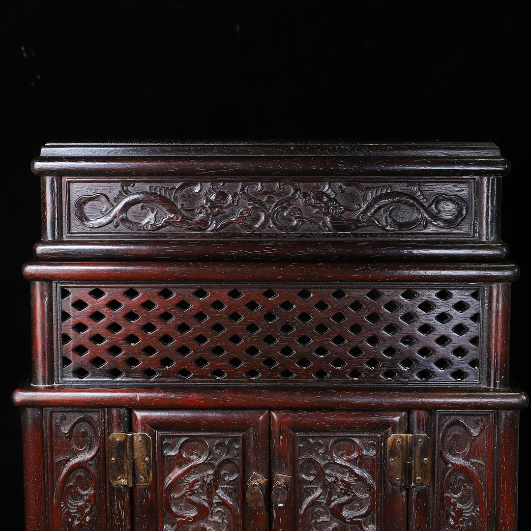 唐物 清 紫檀木 浮彫 キレート龍雙抽多寶櫃 包漿醇厚 細膩温潤 木製 極細工 中国古玩 骨董品 古美味 D68