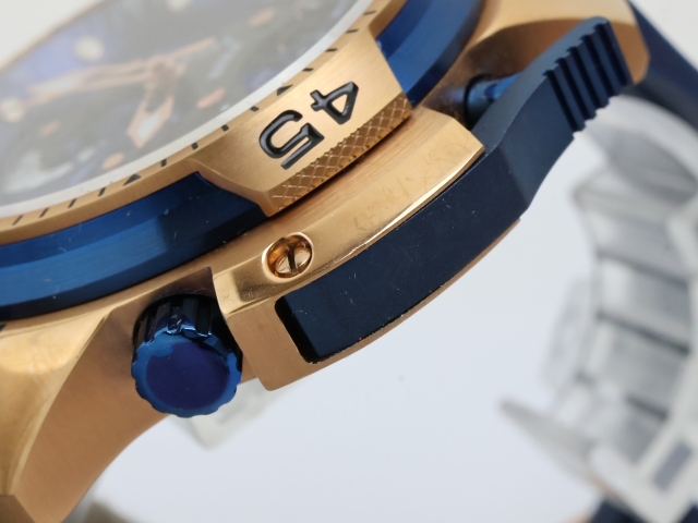 商品説明 | 当商品をご覧いただきありがとうございます。 リーフタイガーのメンズ用の自動巻き式腕時計になります。 西暦・月・日・曜日機能が付いているお品になりますが操作方法等は不明になります。 純正のベルトになります。 21600振動のお品になります。 サイズ | ケース径(リューズ含まず) 約45mm | 厚み 約16mm ベルトの長さ・最大 約23cm ベルト取り付け幅 約24mm 状態 | 日差は±10秒の範囲にあります。 | 日差はタイムグラファーにて計測しております。日差は参考程度にお願いします。 あまり使用感のない美品になります。 動作品になります。 状態は画像を参考にお願いします。 付属品 | 本体 | |