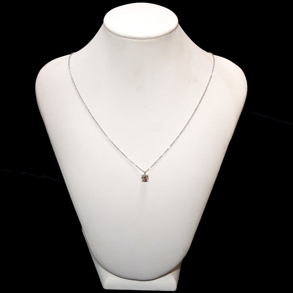 ダイヤモンドは4本の爪でしっかりと留められており、シンプルながら洗練されたデザインのダイヤモンドネックレスです。