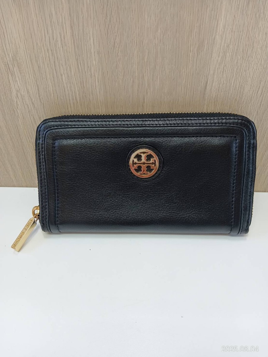 【中古品】 Tory Burch トリーバーチ 黒 ラウンドジップ 長財布 レザー 現状品