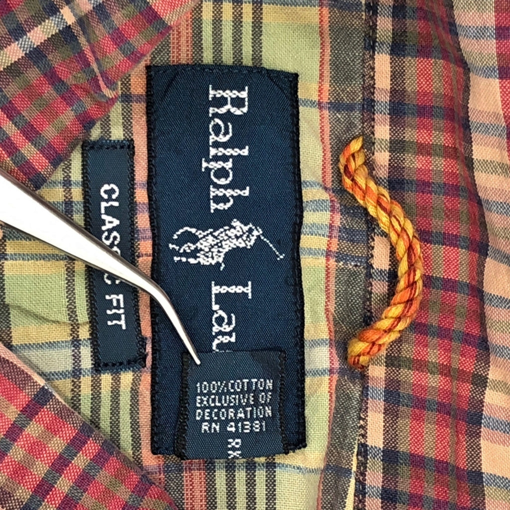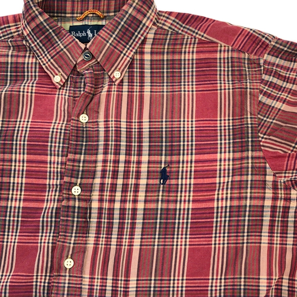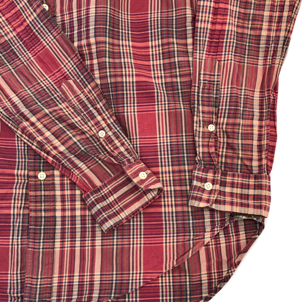 | [商品管理番号] U9686 [ブランド] RALPH LAUREN/ラルフローレン [サイズ] M [実寸サイズ] 肩幅:約47cm 着丈:約76cm 身幅:約62cm 袖丈:約64cm [主な素材] 表地 : コットン [色] レッド [仕様] チェック [状態] 破れ:裾 特記事項:リペア跡、ボタン欠損 ボタンリペア | |||