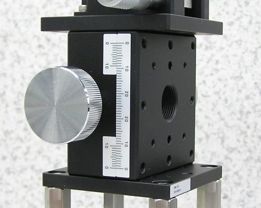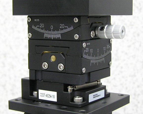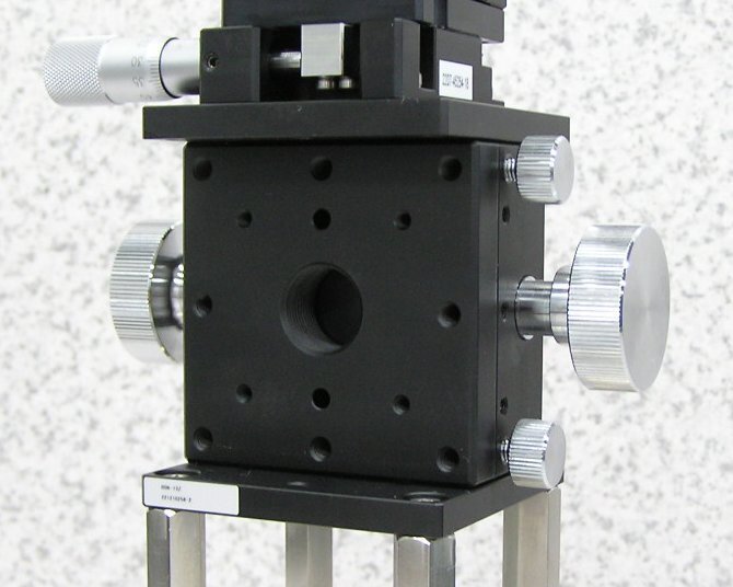 4軸の手動ゴニオステージとステンレスの台座付きです。