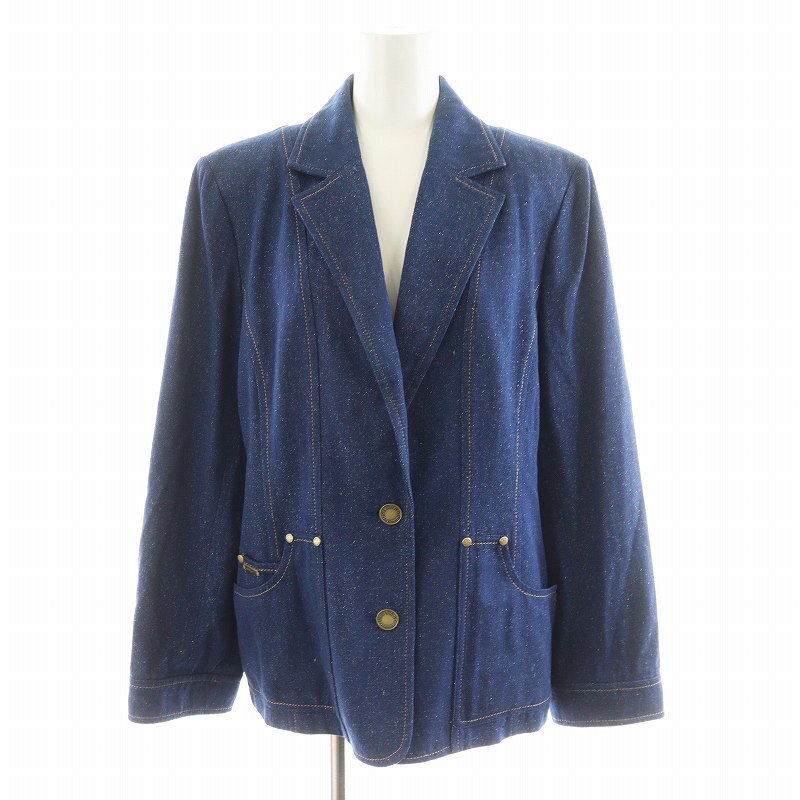 レオナール LEONARD FASHION セットアップ テーラードジャケット シングル タイトスカート ひざ丈 シルク 絹 13AR 72-96 紺