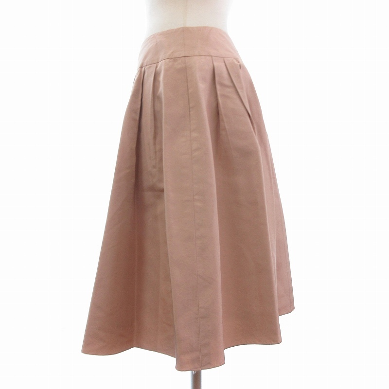 フォクシー FOXEY フレアスカート シルク ひざ丈 レース装飾 タック 40 ピンク レディース