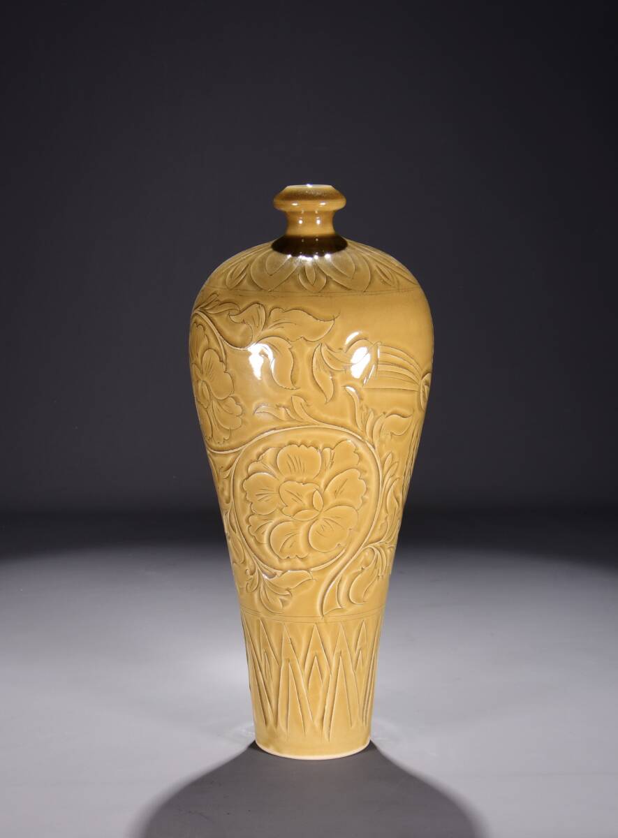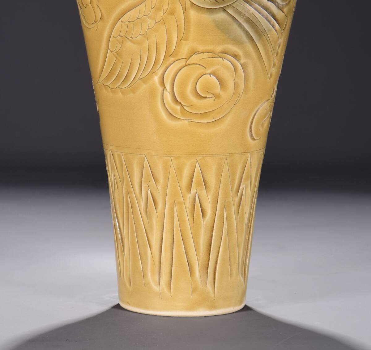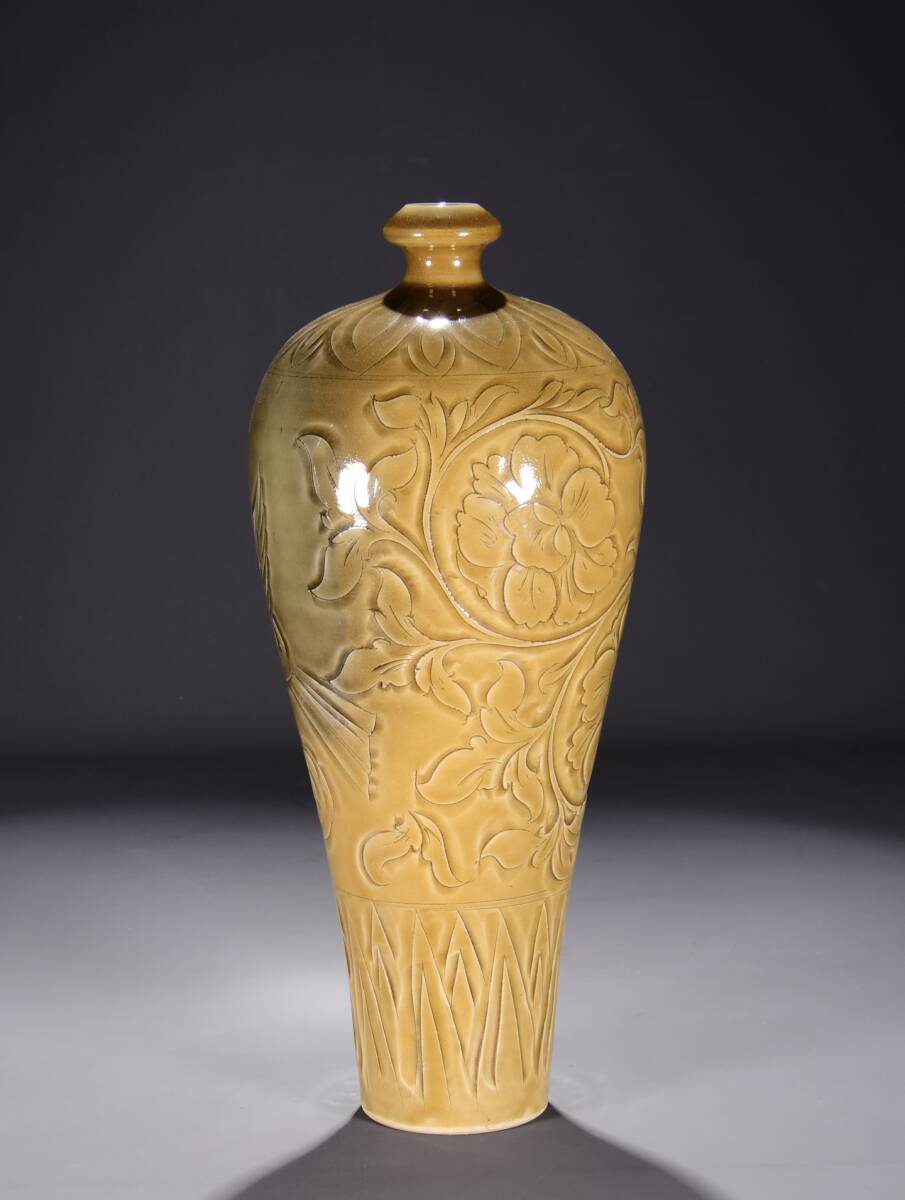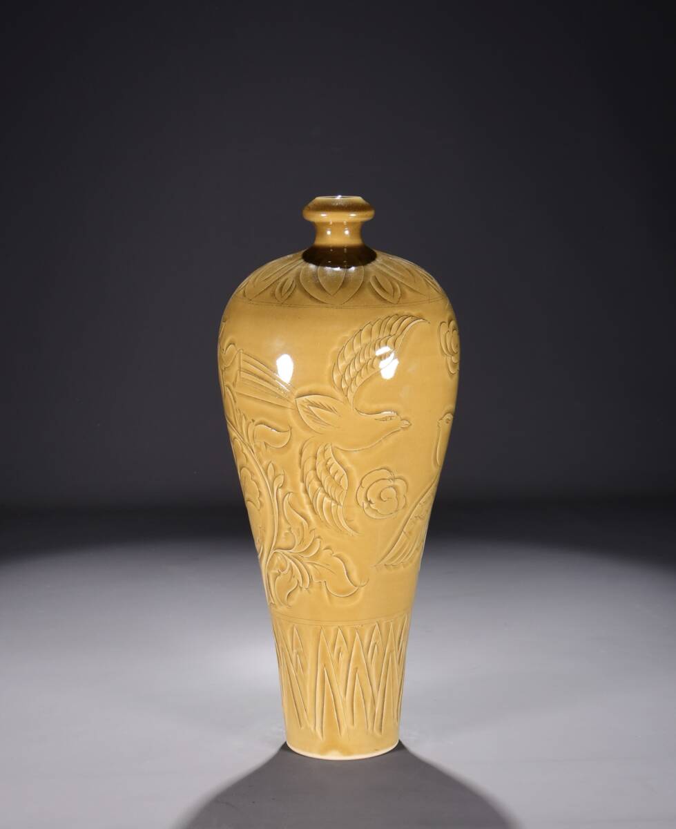 宋時代 古陶磁器 耀州 青瓷 花鳥紋 梅瓶 賞瓶 花瓶 題刻磁器 文案置物 擺件 時代物 古董品 骨董 旧家蔵出し 唐物 中国古玩 古美術品