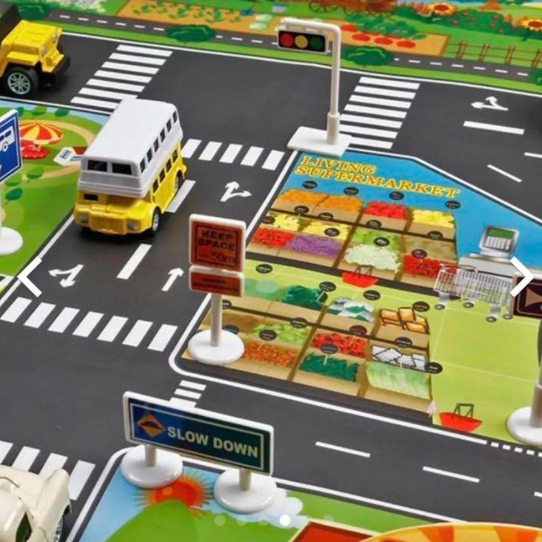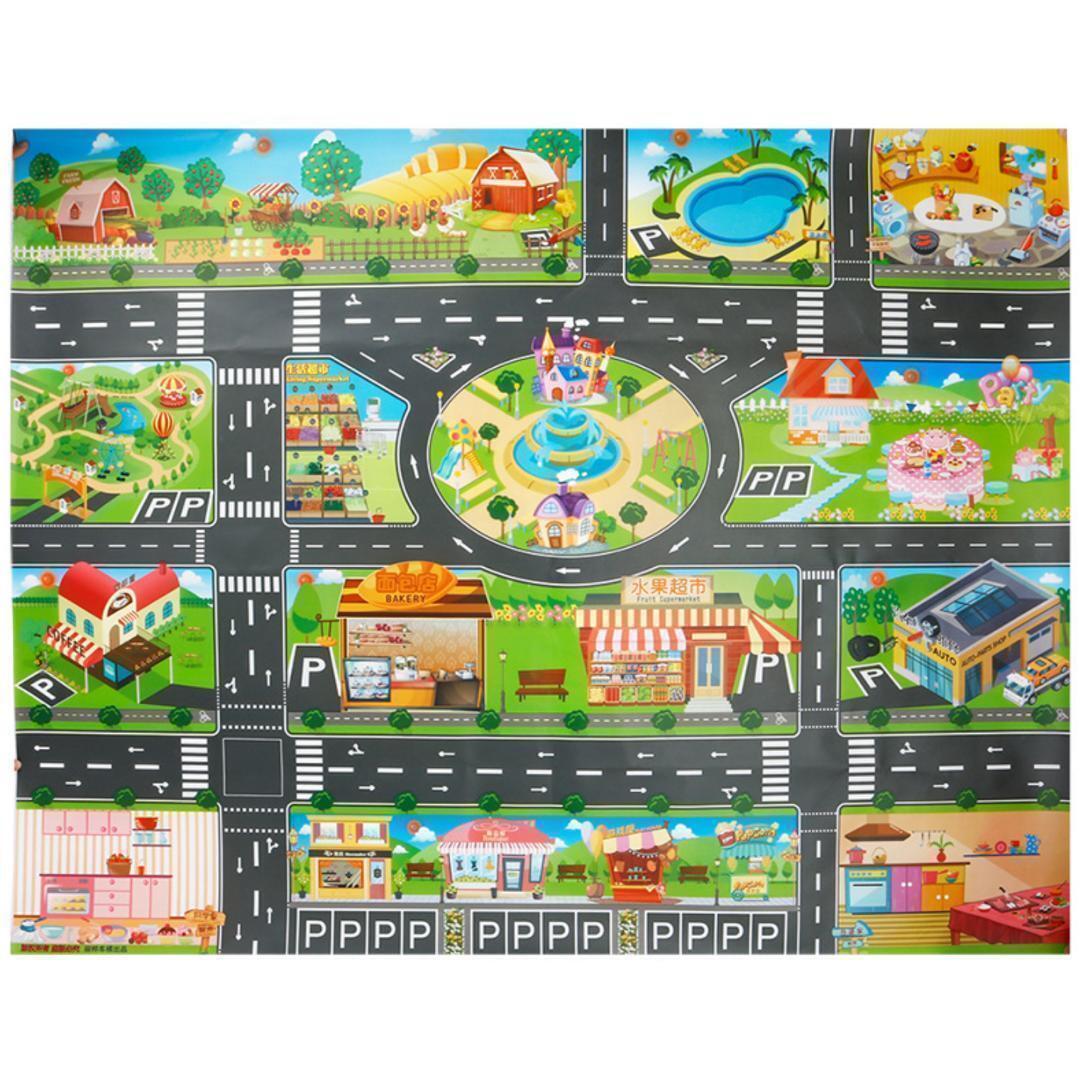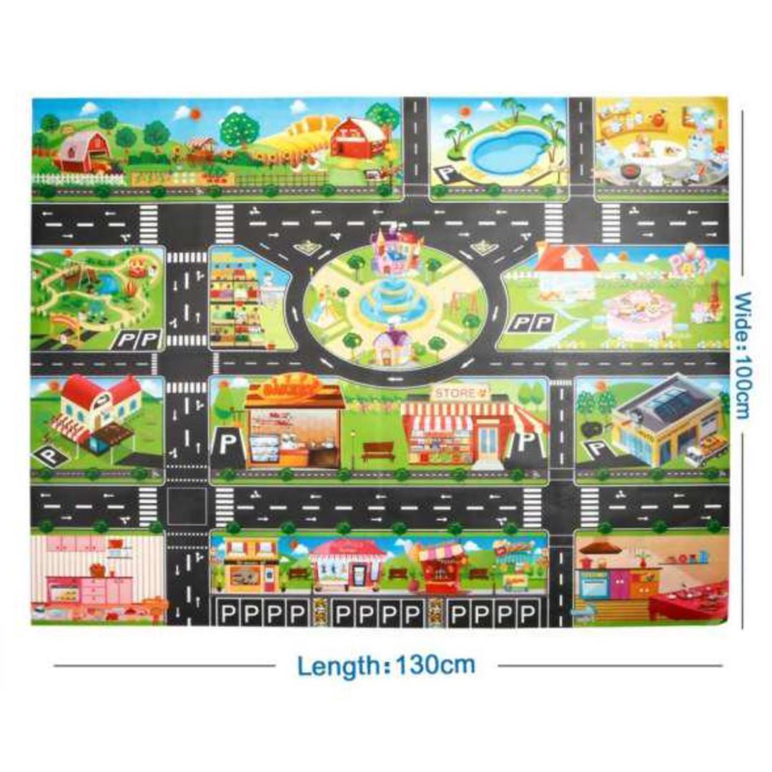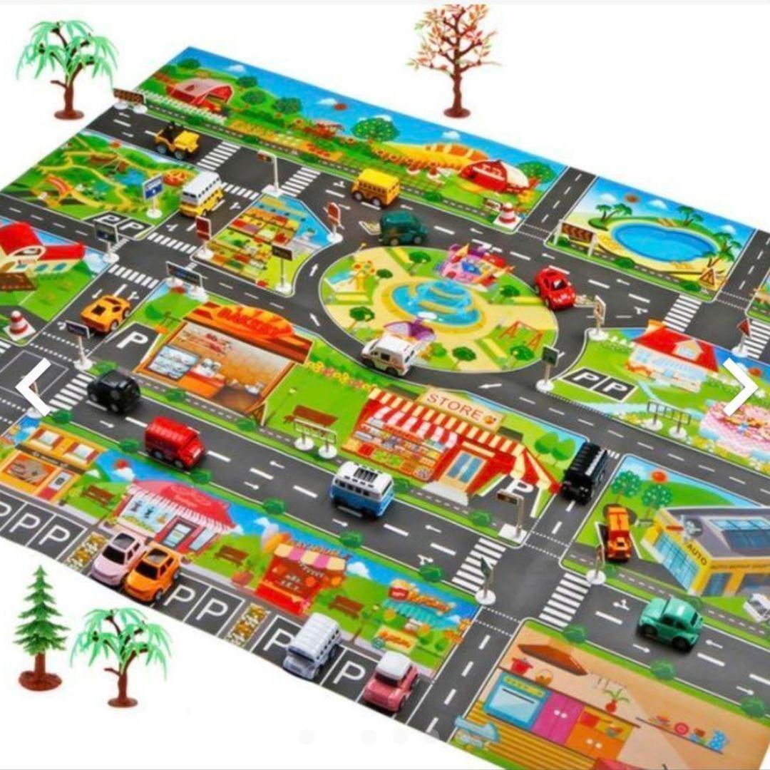 クルマ好きの子どもに人気の、子供用プレイマットです。1mx1.3mのサイズですが、子どもが遊ぶには十分な大きさです。好みに合わせた様々なデザインの道路地図を用意しました。