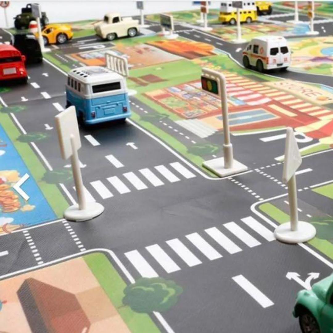 プレイマットにある街の道路をミニカーなどで走らせることにより、交通ルールや道路標識などを理解でき、子供の知育教育にもつながるため、ぜひプレイマット上で遊ばせてみて下さい。シートは水拭きできる素材なので、子供が汚すの気にせずに済みます。