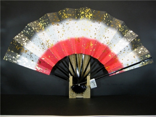 舞扇子 A387 黒・赤天地 金箔小石 【箱なし】